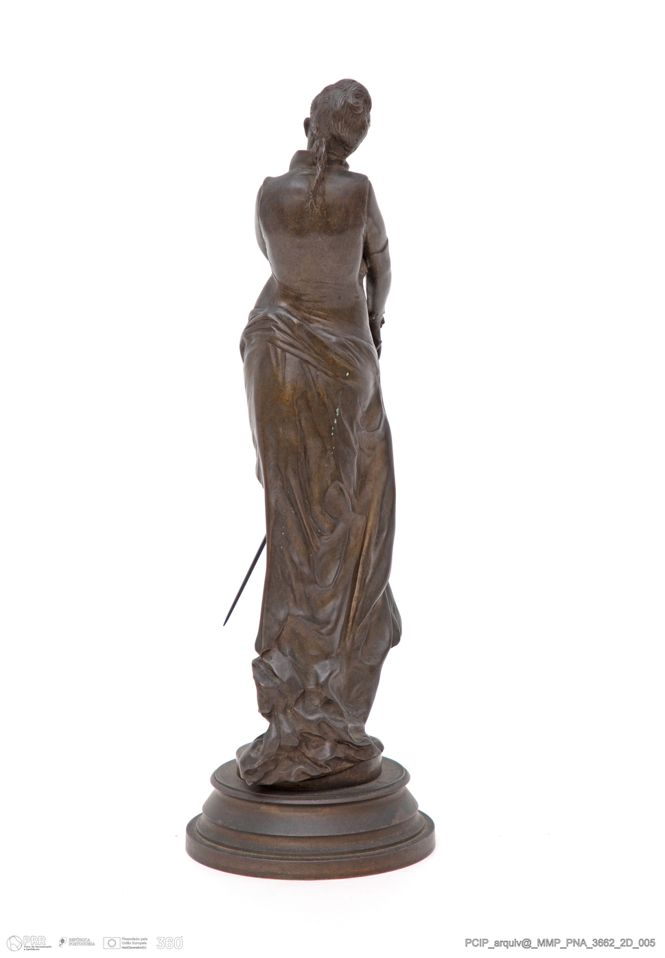 Matéria/Técnica: Bronze; Cronologia: Século XIX; Autoria: Desconhecida; Dimensões (cm): Altura: 9,5; Largura: 5; Profundidade: 5,5.