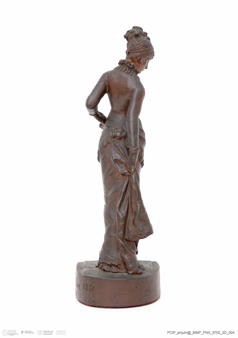 Matéria/Técnica: Bronze; Cronologia: Século XIX; Autoria: Preatoni, Luigi; Dimensões (cm): Altura: 28,5; Largura: 11,5; Profundidade: 10,5.