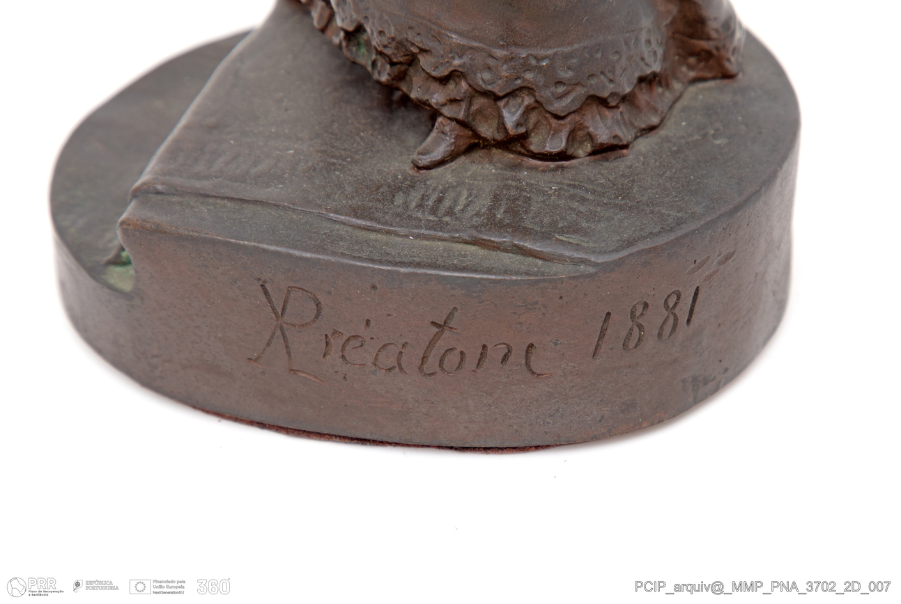 Matéria/Técnica: Bronze; Cronologia: Século XIX; Autoria: Preatoni, Luigi; Dimensões (cm): Altura: 28,5; Largura: 11,5; Profundidade: 10,5.