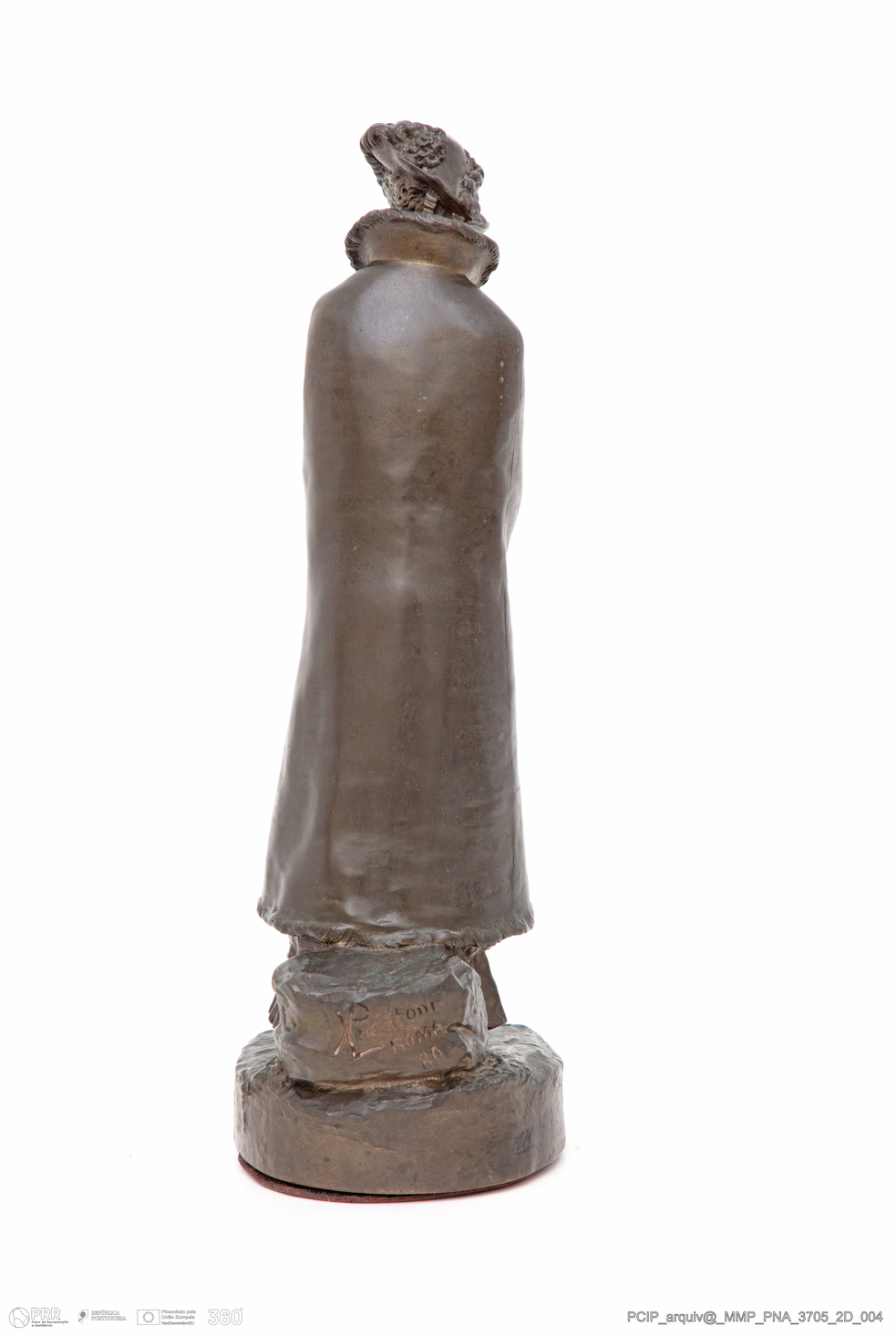 Matéria/Técnica: Bronze; Cronologia: 1880; Autoria: Preatoni, Luigi; Dimensões (cm): Altura: 28,2; Largura: 11,5; Profundidade: 10.