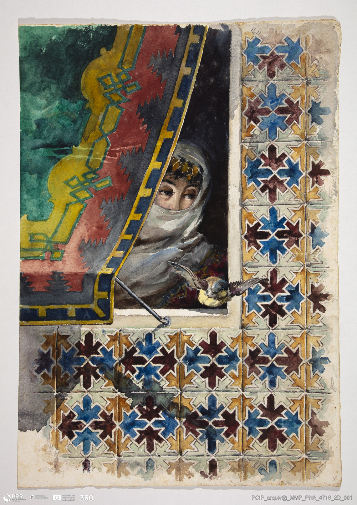 Mulher oriental à janela