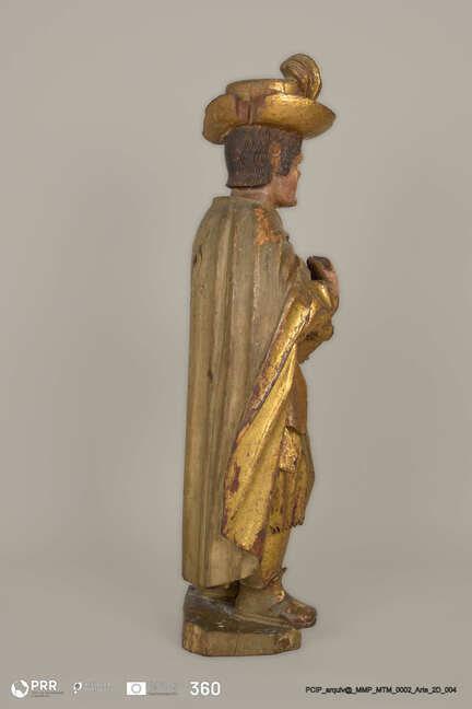 Matéria/Técnica: Escultura dourada e policromada; Cronologia: Séculos XVII - XVIII; Autoria: Desconhecida; Dimensões (cm): Altura: 92 x Largura: 39 x Profundidade: 30.