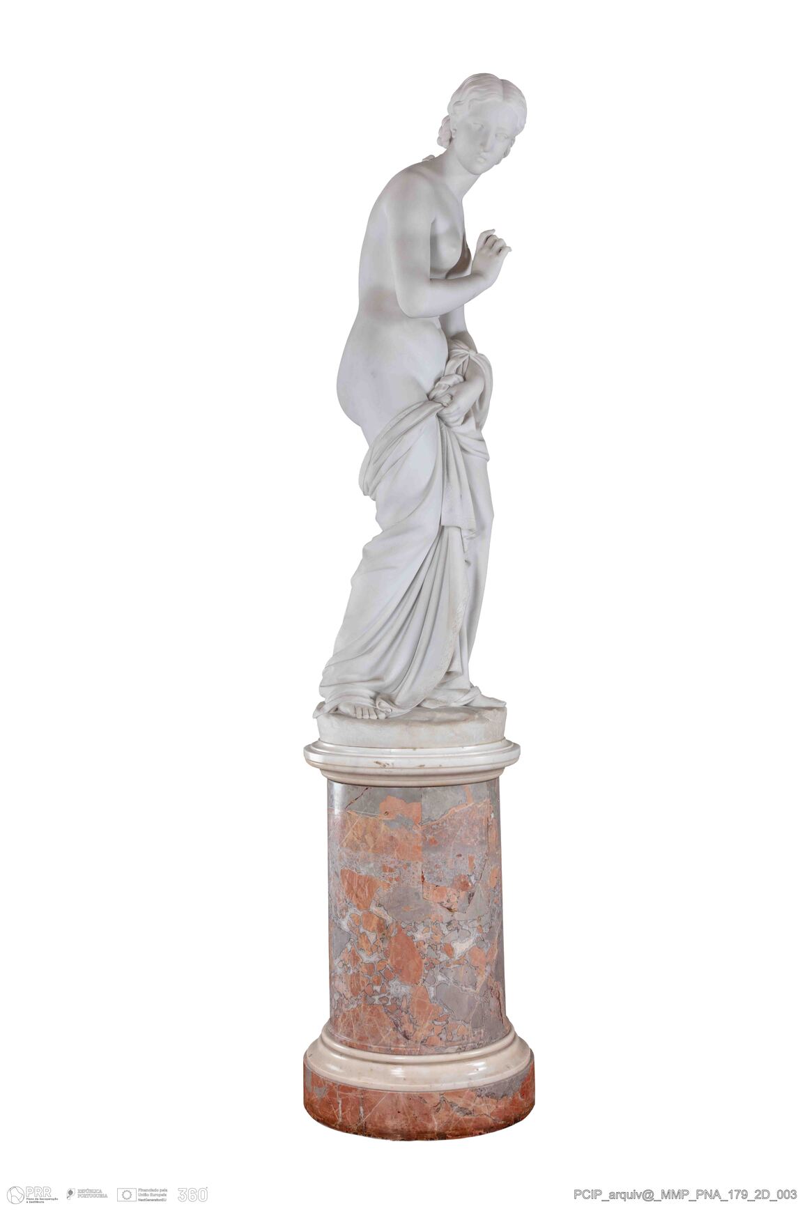 Matéria/Técnica: Mármore; Cronologia: 1865; Autoria: Fantacchiottti, Odoardo (1809-1877) e Thompson, Launt (1833-1894); Dimensões (cm): Altura: 165; Largura: 65; Profundidade: 55; Diâmetro: 55 (plataforma).