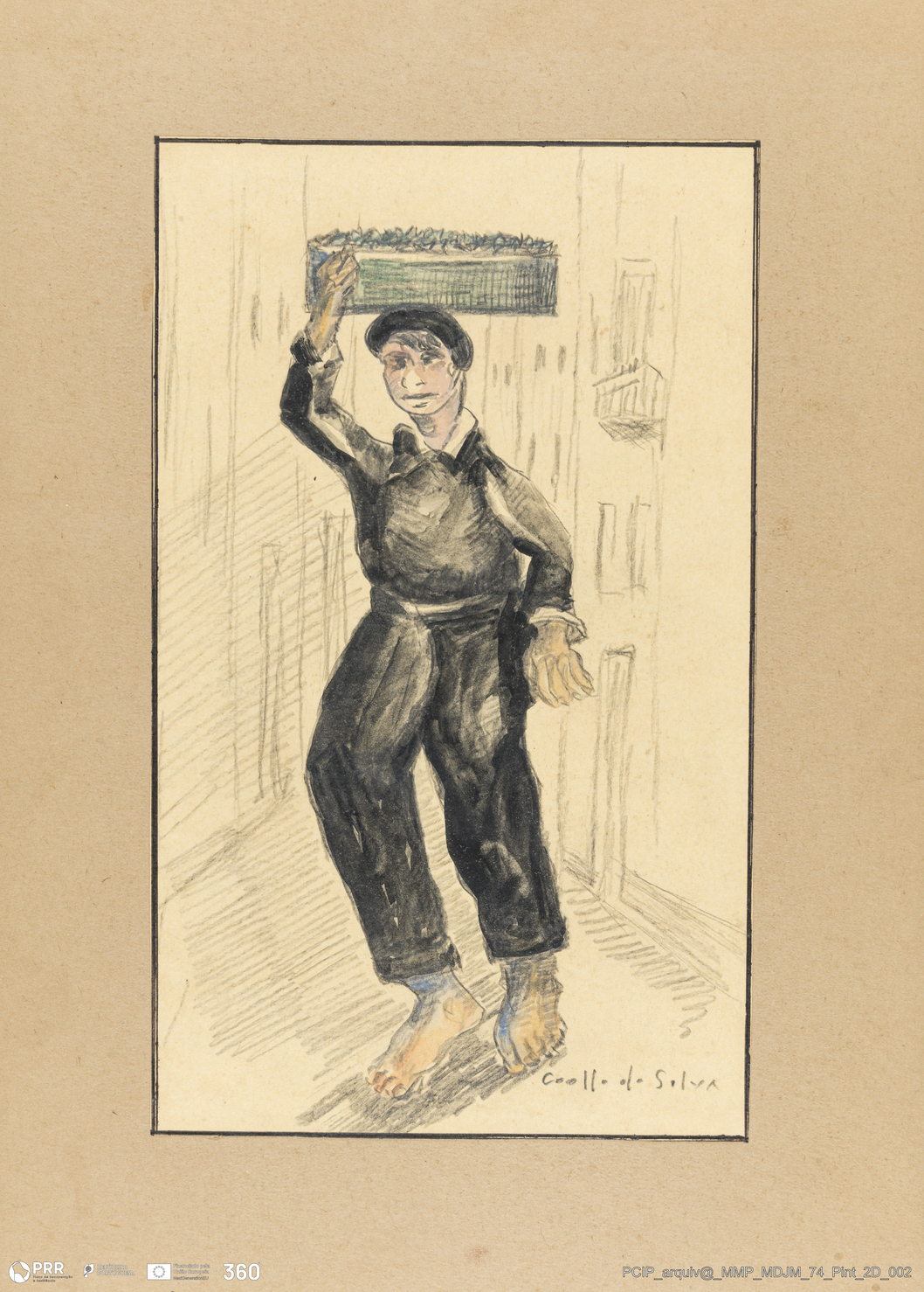 Matéria/Técnica: Lápis e aguarela sobre papel; Cronologia: Séc. XX; Autoria: Manuel Coelho da Silva; Dimensões: Altura: 54 cm x Largura: 34 cm.