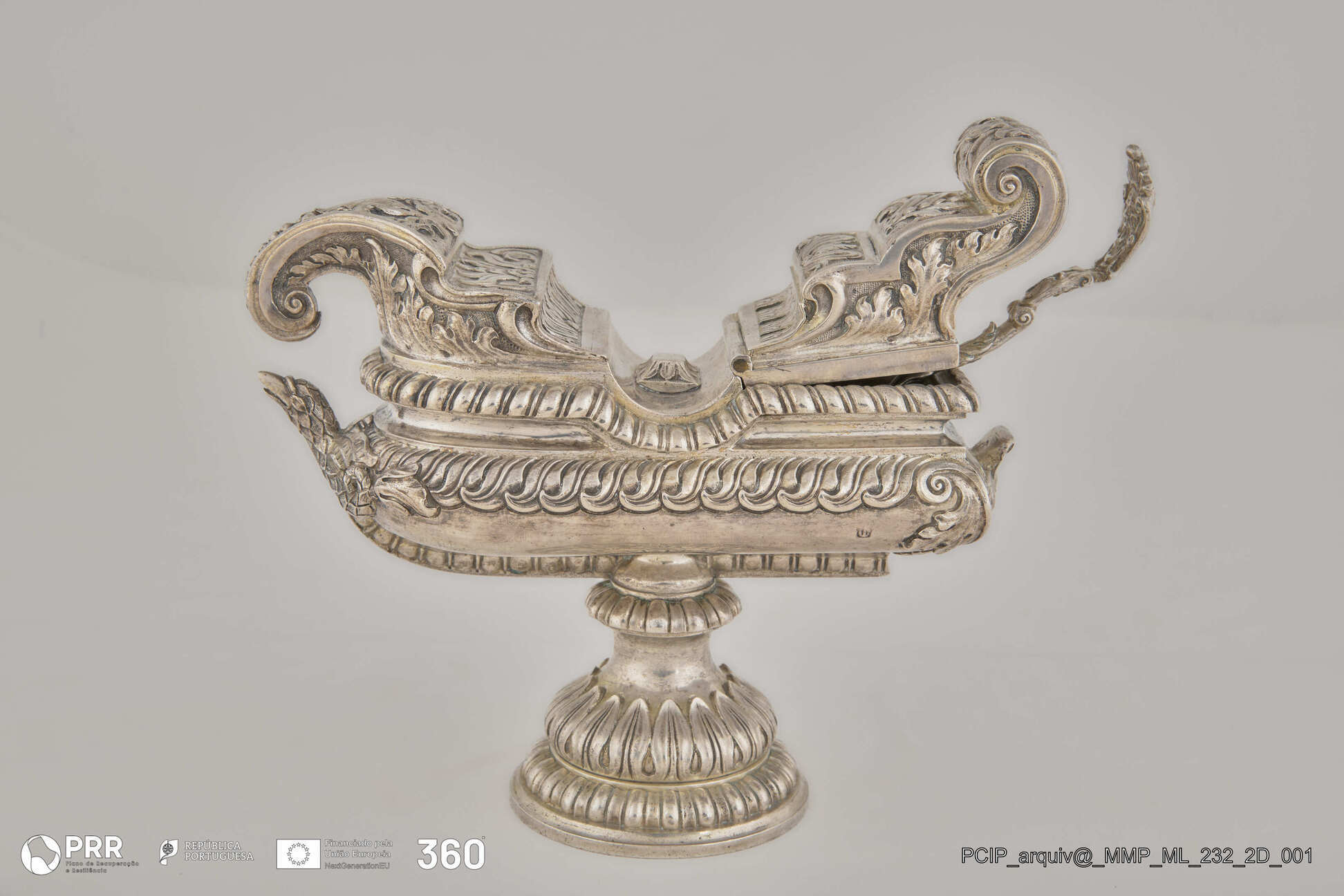 Matéria/Técnica: Prata branca, dourada, relevada e cinzelada; Cronologia: Desconhecida; Autoria: Desconhecida; Dimensões: Desconhecidas.