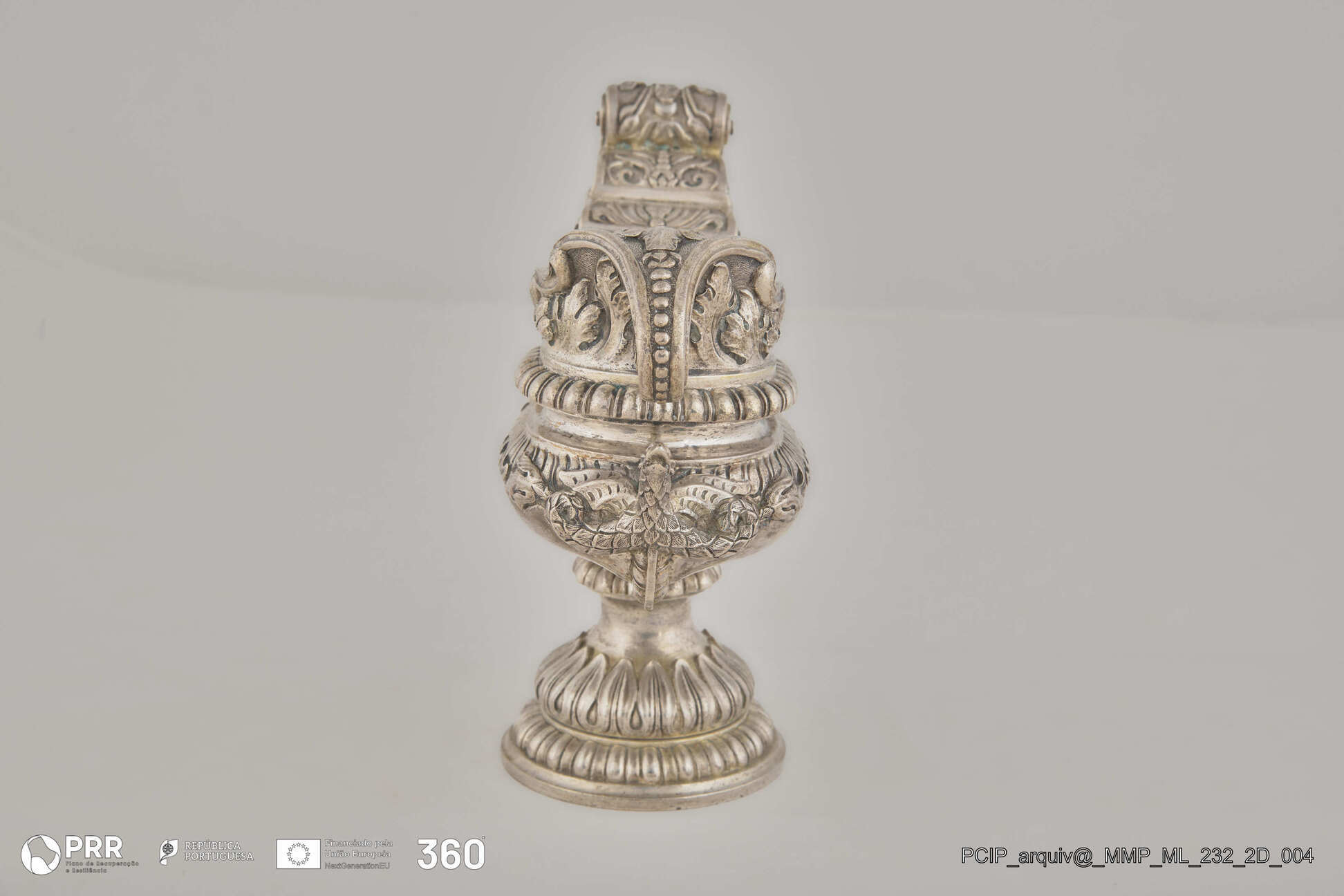 Matéria/Técnica: Prata branca, dourada, relevada e cinzelada; Cronologia: Desconhecida; Autoria: Desconhecida; Dimensões: Desconhecidas.