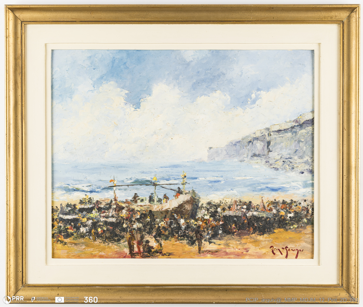 Matéria/Técnica: Óleo sobre platex; Cronologia: Séc. XX; Autoria: Rosa Mendes; Dimensões: Altura: 39 cm x Largura: 48,5 cm.