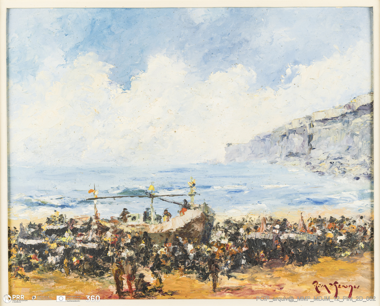 Matéria/Técnica: Óleo sobre platex; Cronologia: Séc. XX; Autoria: Rosa Mendes; Dimensões: Altura: 39 cm x Largura: 48,5 cm.