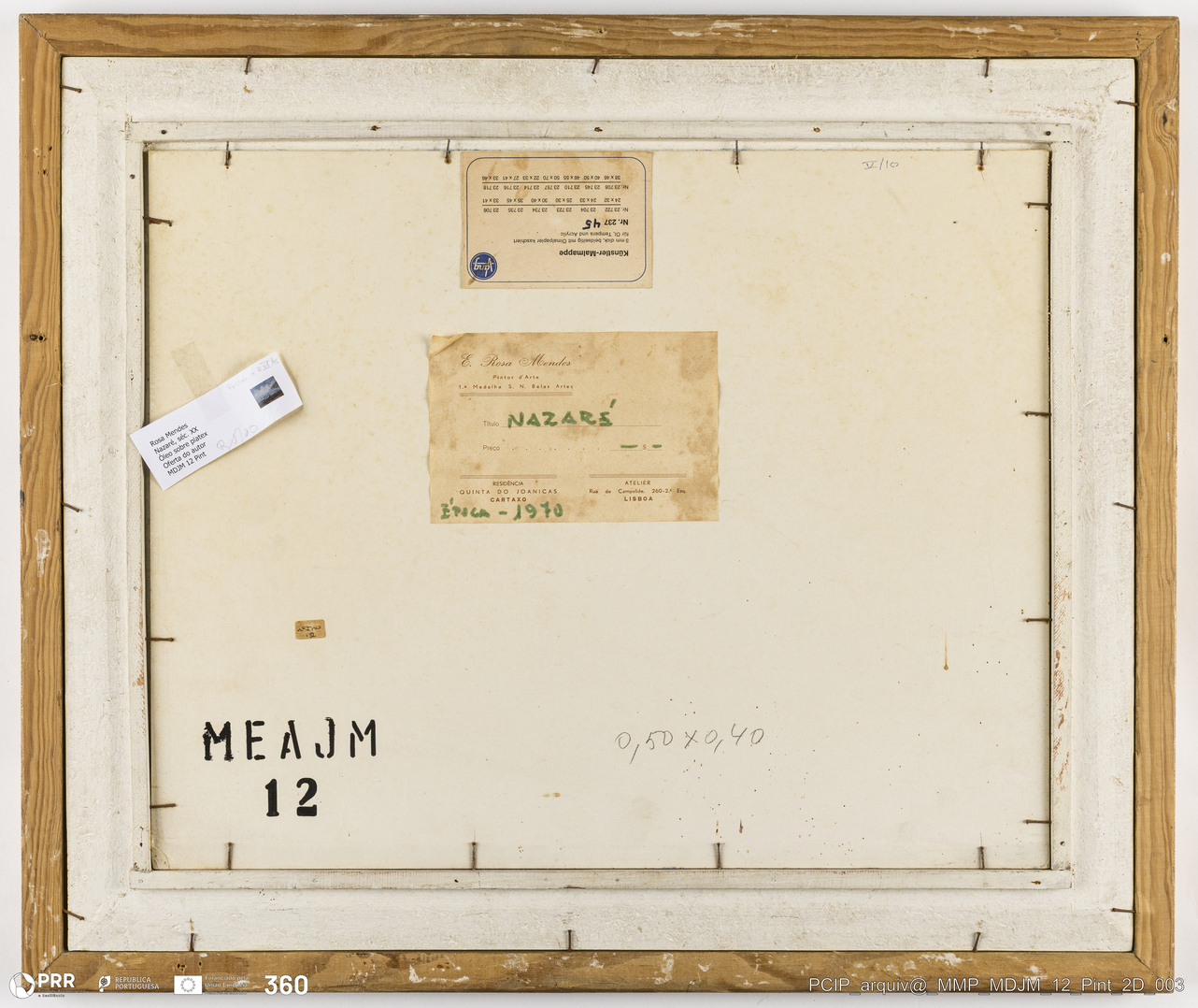 Matéria/Técnica: Óleo sobre platex; Cronologia: Séc. XX; Autoria: Rosa Mendes; Dimensões: Altura: 39 cm x Largura: 48,5 cm.