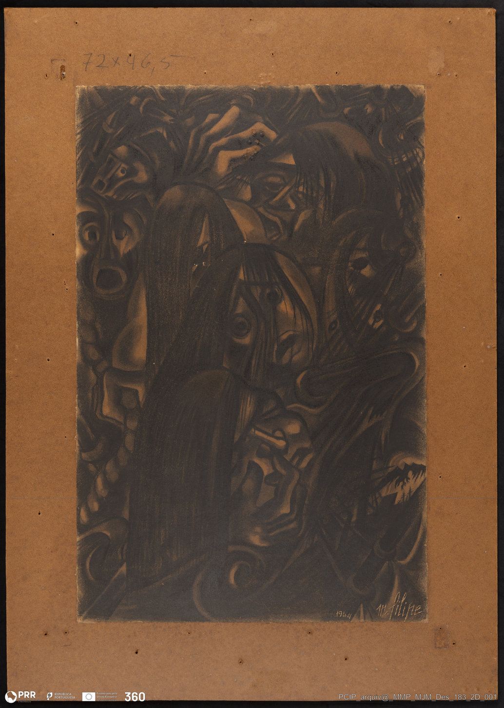 Matéria/Técnica: Carvão sobre papel; Cronologia: 1944; Autoria: Manuel Filipe; Dimensões: 74 x 50 cm.