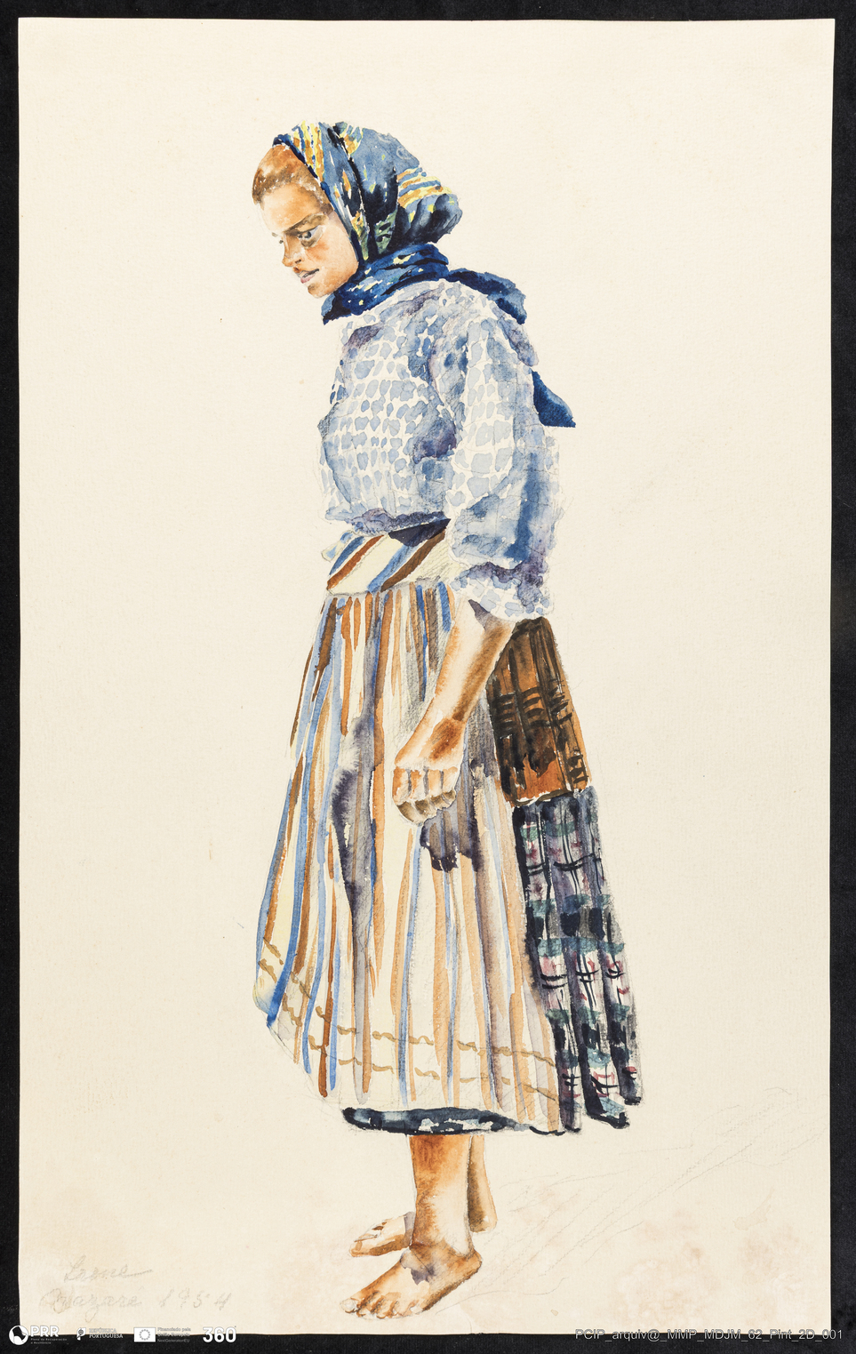 Matéria/Técnica: Aguarela sobre papel; Cronologia: 1954; Autoria: Irene Sá Vieira Natividade; Dimensões: Altura: 24,5 cm x Largura: 18,2 cm.