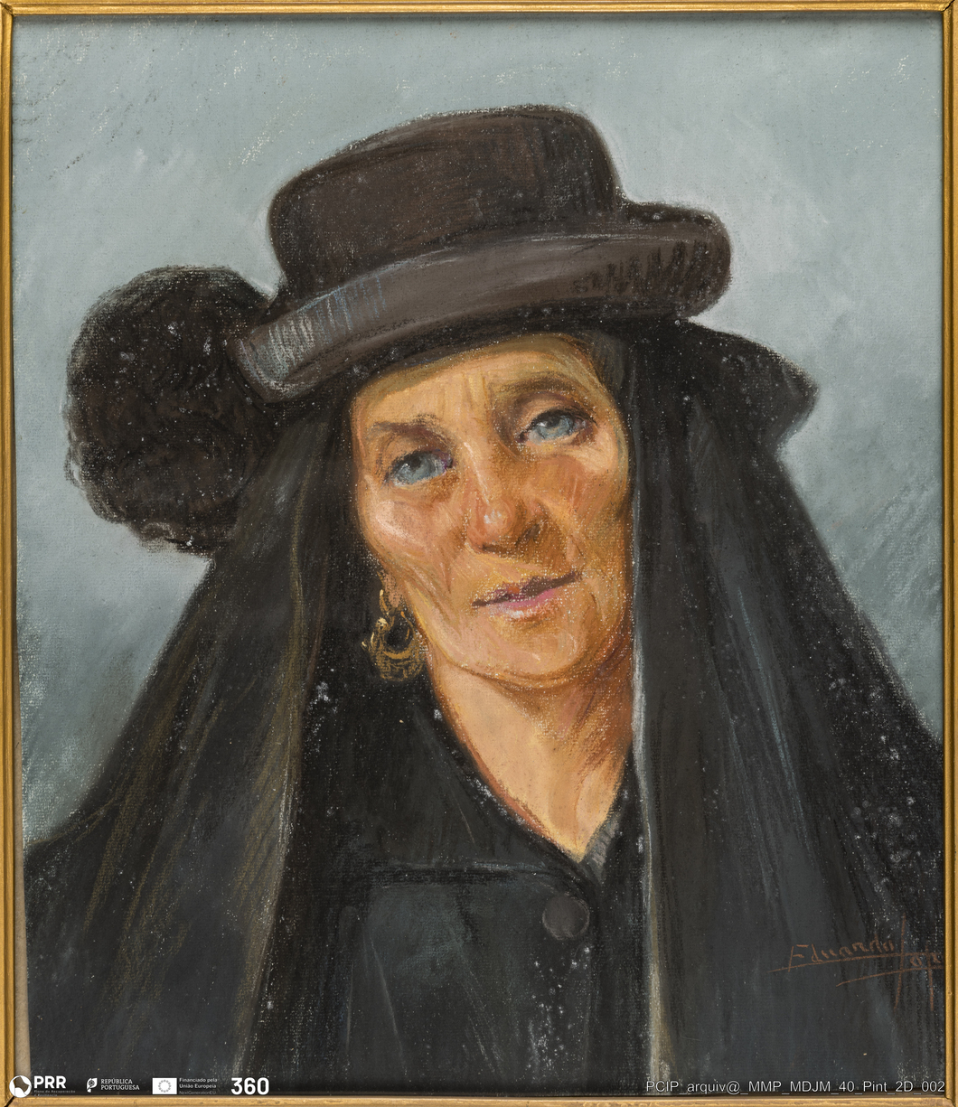 Matéria/Técnica: Pastel sobre tela; Cronologia: Séc. XX; Autoria: Eduarda Lapa; Dimensões: Altura: 42 cm x Largura: 36,5 cm.