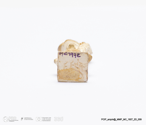 Matéria/Técnica: Barro branco modelado; Cronologia: século XIX; Autoria: Francisco Elias / Caldas da Rainha, Portugal; Dimensões (cm): Altura: 7,5.