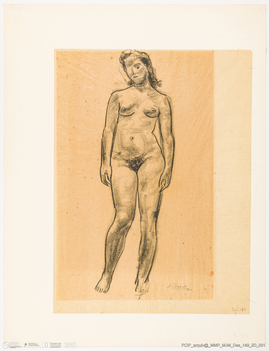 Matéria/Técnica: Carvão sobre papel; Cronologia: 1944; Autoria: António Duarte; Dimensões: 37 x 30 cm.