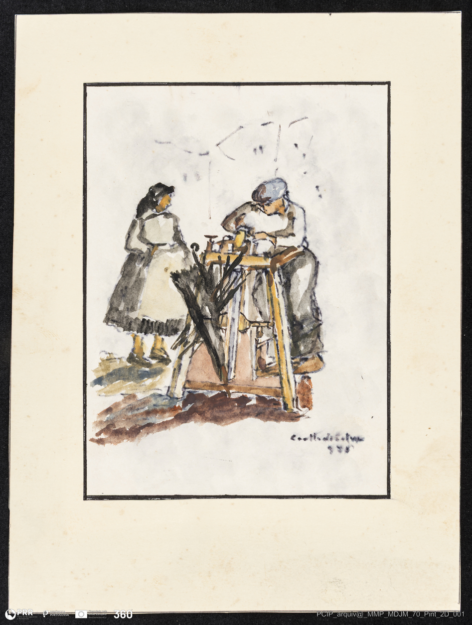 Matéria/Técnica: Aguarela sobre papel; Cronologia: 1976; Autoria: Manuel Coelho da Silva; Dimensões: Altura: 93 cm x Largura: 88 cm.