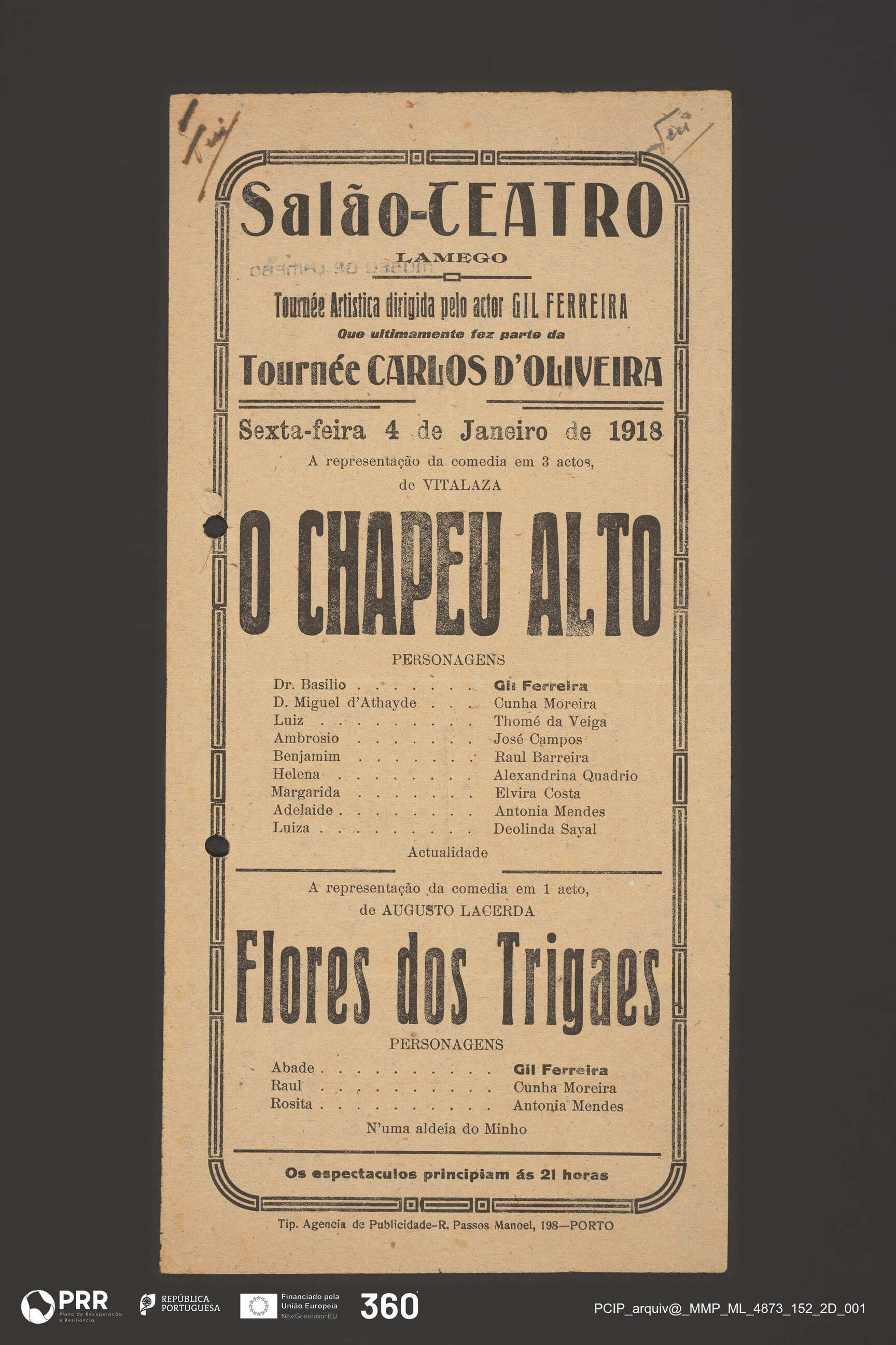 Matéria/Técnica: Impressão; Cronologia: 1918; Autoria: Desconhecida; Dimensões (cm): Altura: 29,8 x Comprimento: 14,4.
