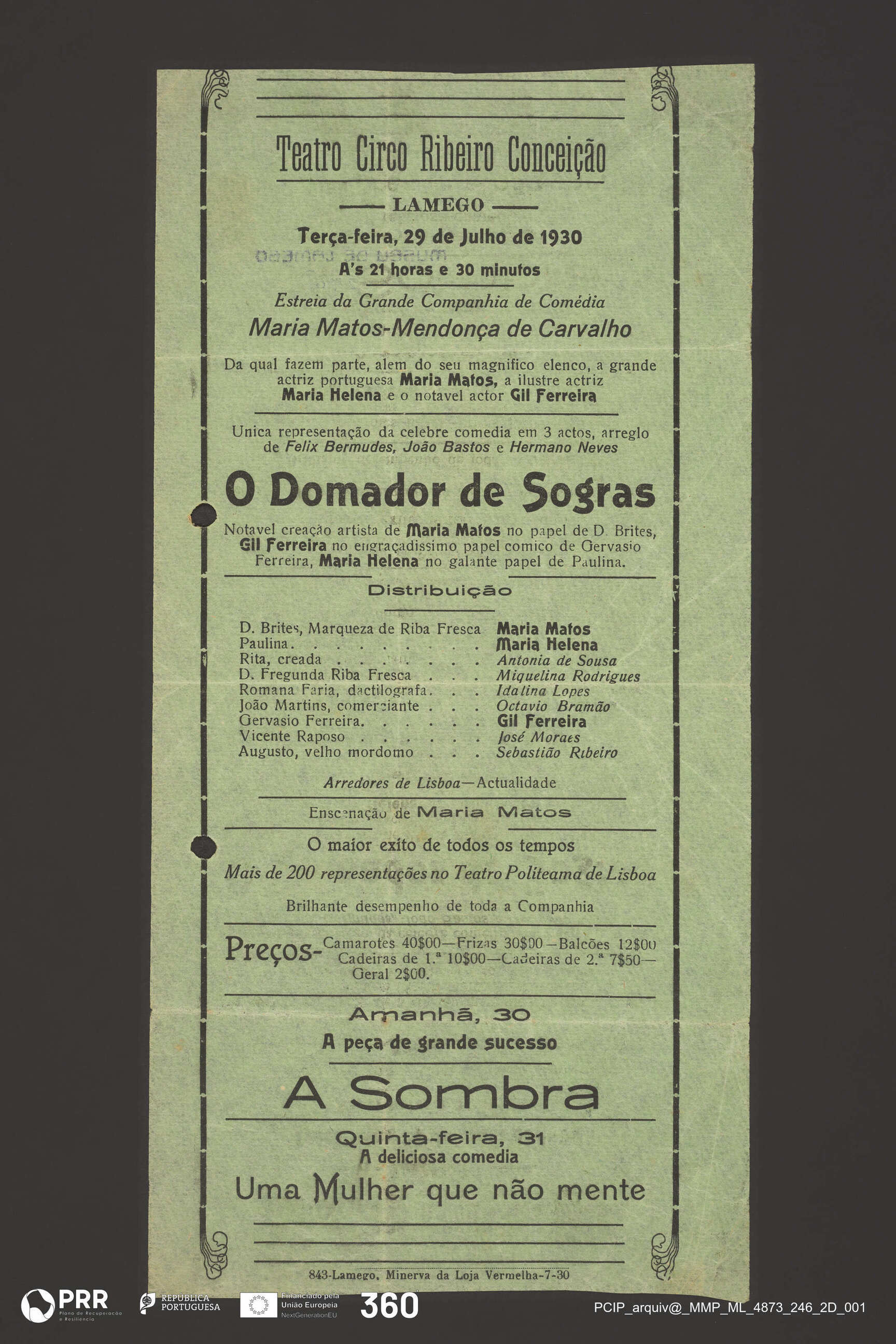 Matéria/Técnica: Impressão; Cronologia: 1930; Autoria: Desconhecida; Dimensões (cm): Altura: 29,8 x Comprimento: 14,6.