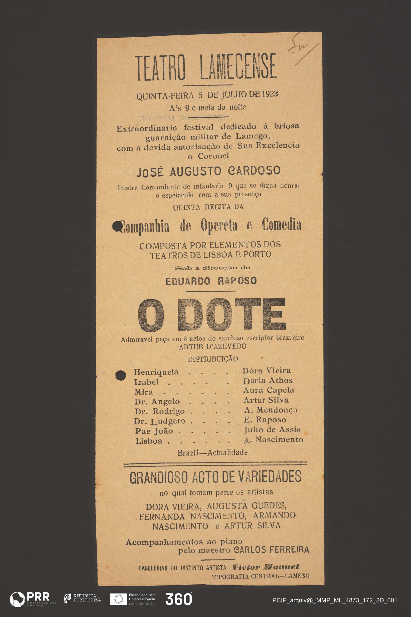 Matéria/Técnica: Impressão; Cronologia: 1923; Autoria: Desconhecida; Dimensões (cm): Altura: 29,7 x Comprimento: 12,4.