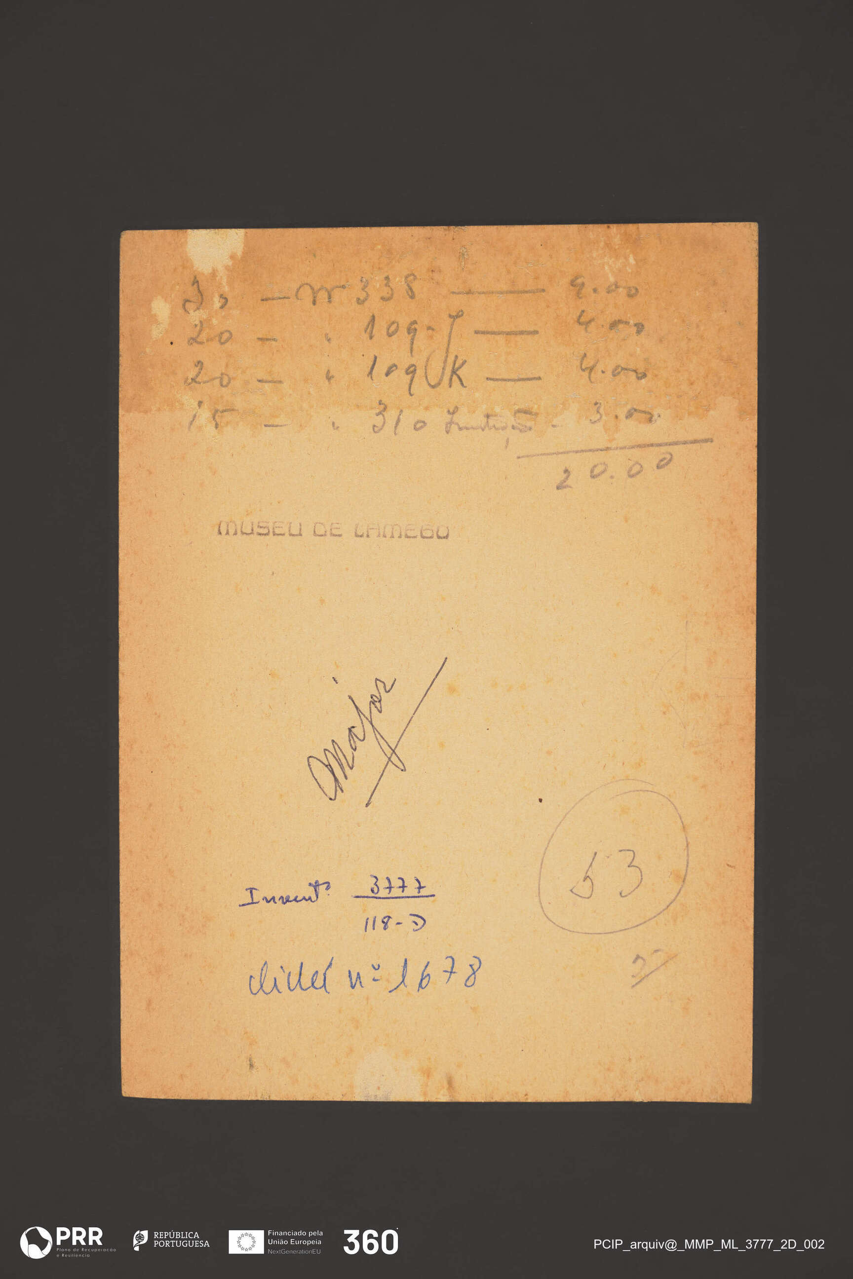 Museu de Lamego; N.º Inventário: 3777