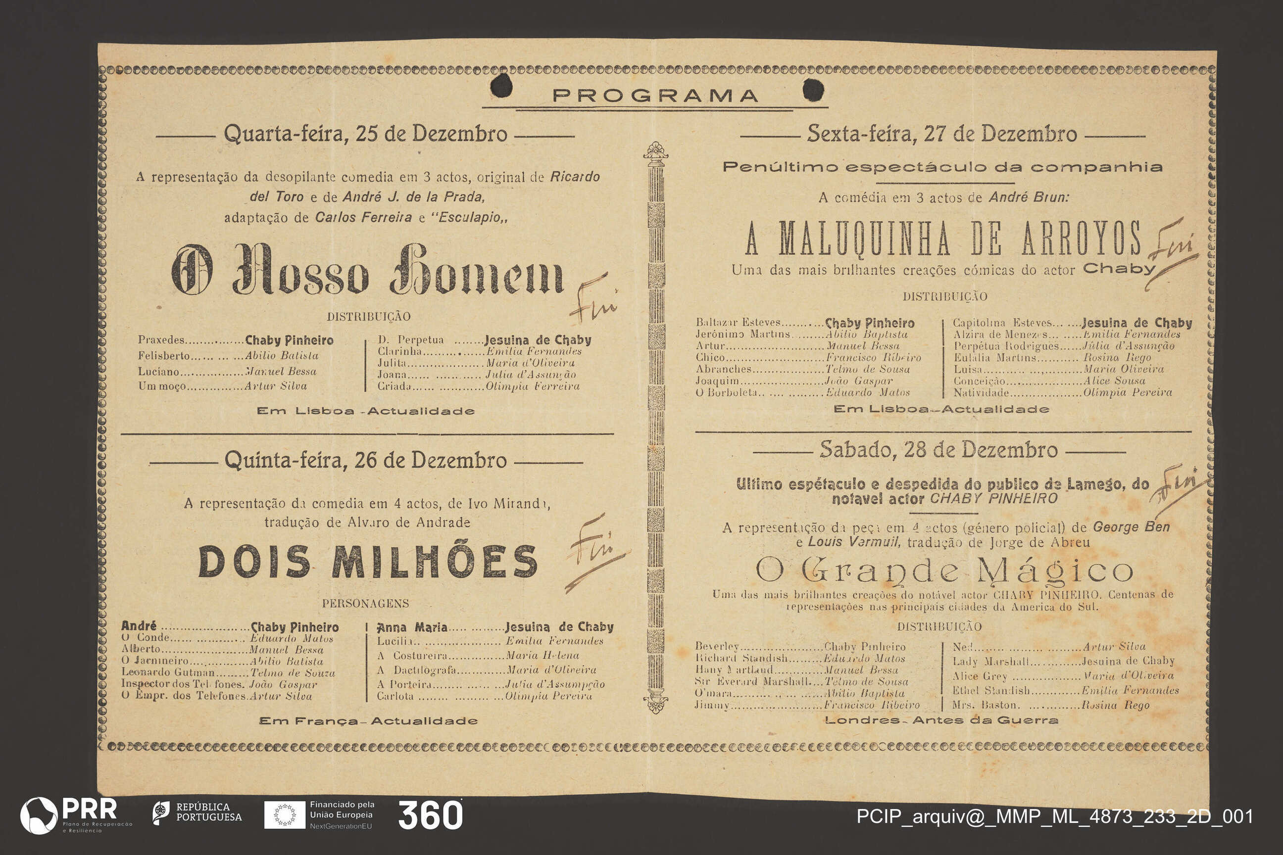 O nosso homem; Dois Milhões; A Maluquinha de Arroyos; O Grande Mágico