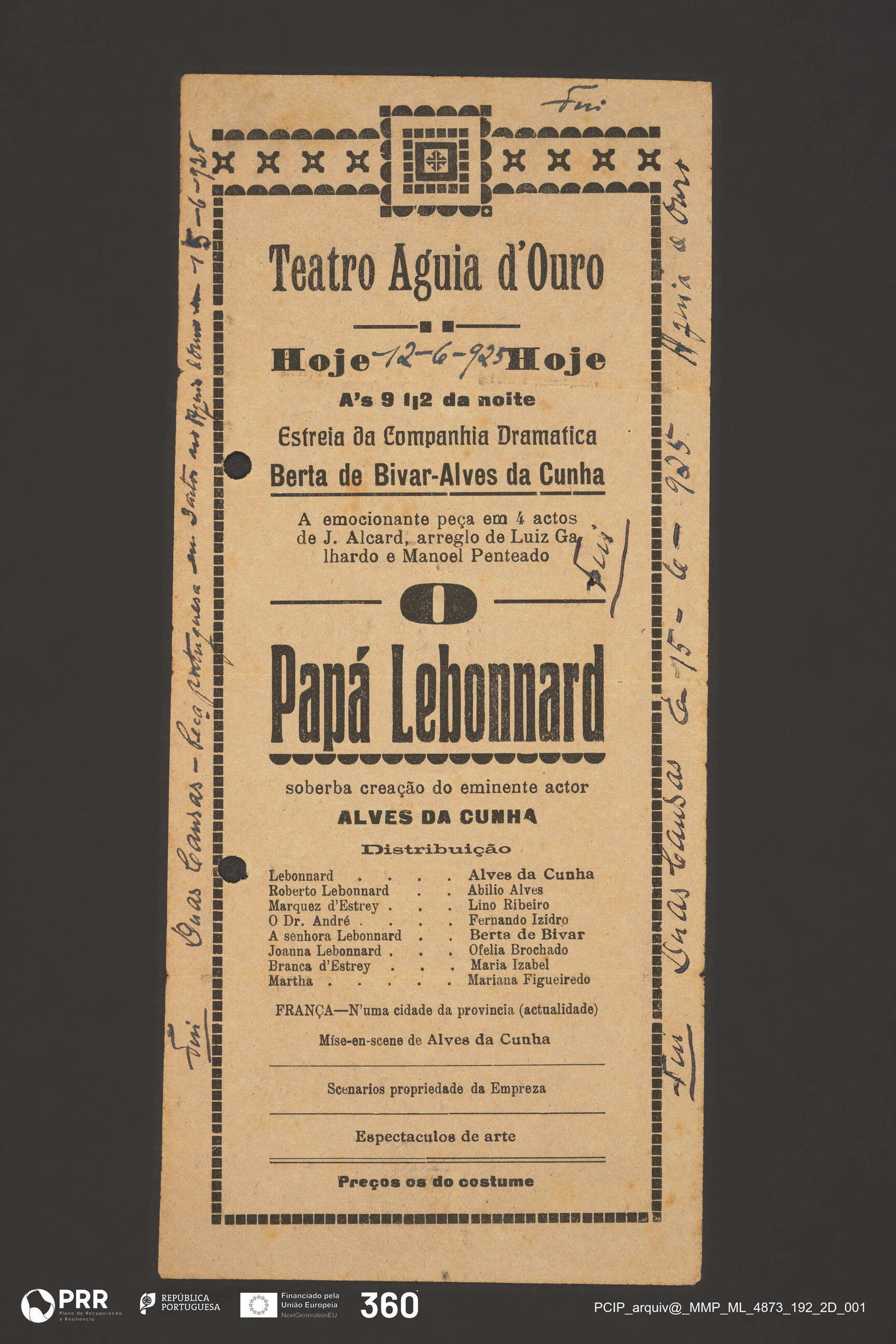 Matéria/Técnica: Impressão; Cronologia: 1925; Autoria: Desconhecida; Dimensões (cm): Altura: 24,2 x Comprimento: 10,9.