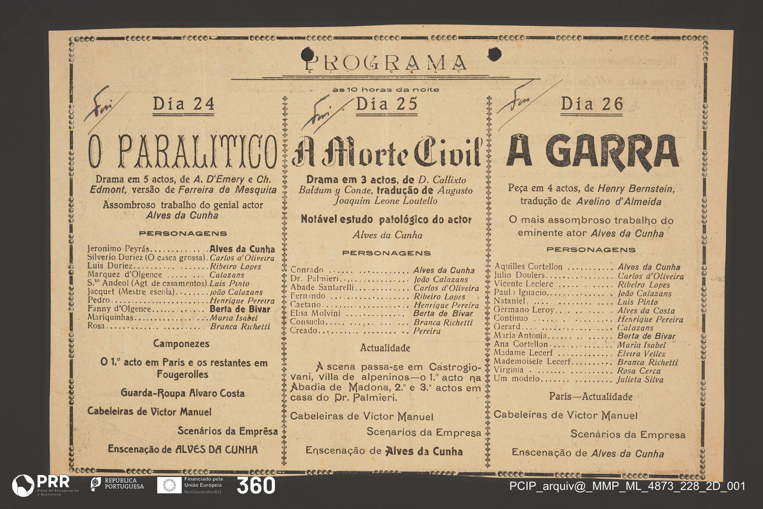 O Paralitico; A Morte Civil; A Garra