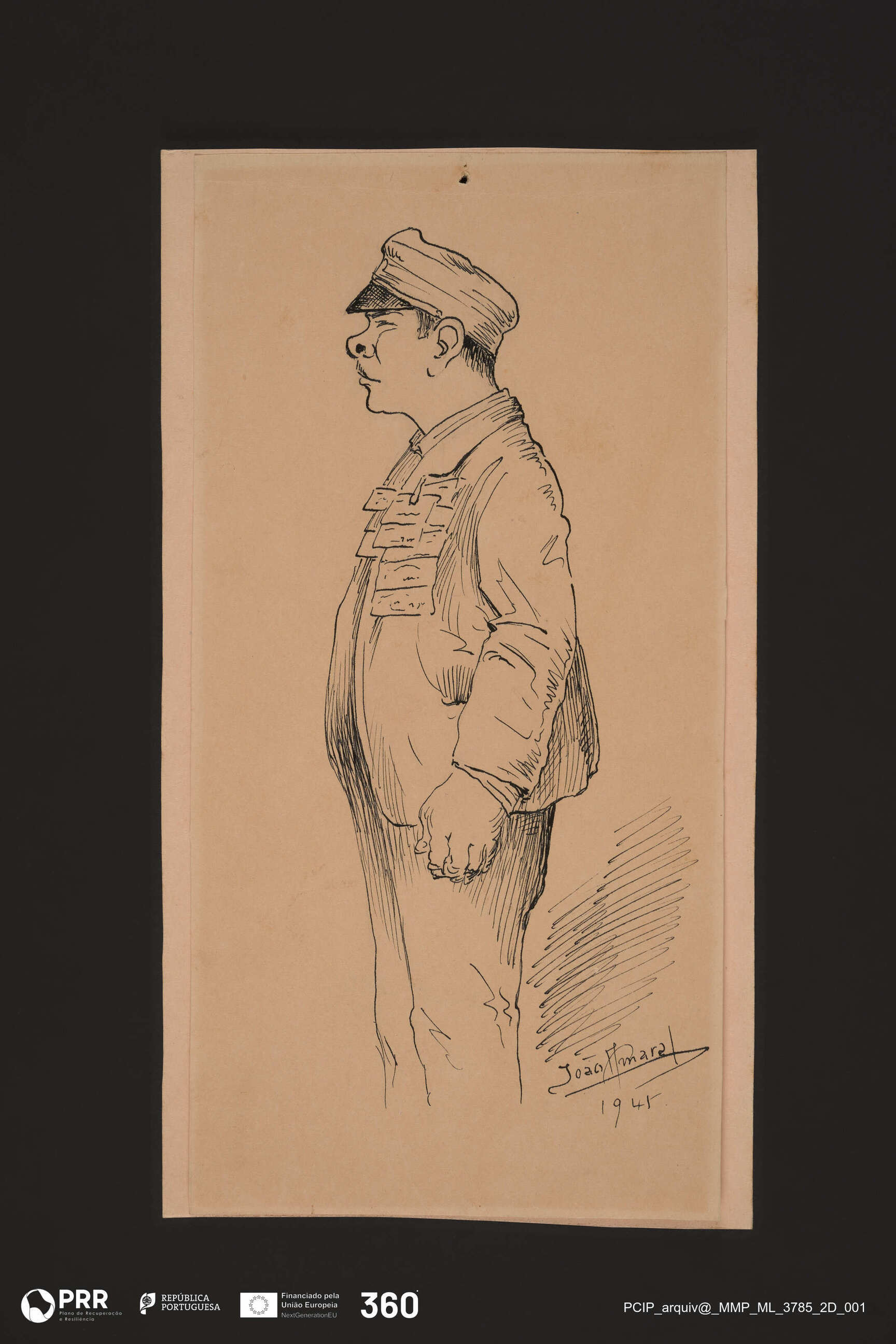Matéria/Técnica: Desenho à pena; Cronologia: 1945; Autoria: Amaral, João (1874 - 1955); Dimensões (cm): Altura: 28,2 x Largura: 14,2.