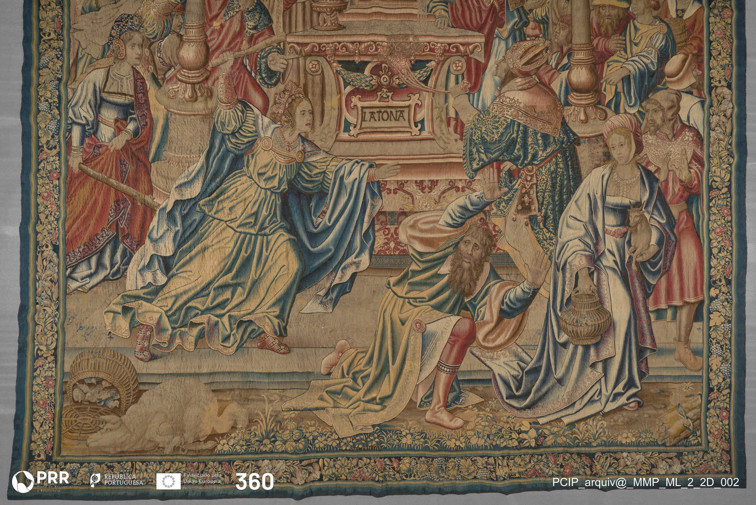 Matéria/Técnica: Tecelagem de alto liço; Cronologia: 1525-1530; Autoria: Orley, Bernard van (ca.1488-1541); Dimensões (cm): Altura: 430 x Largura: 390.