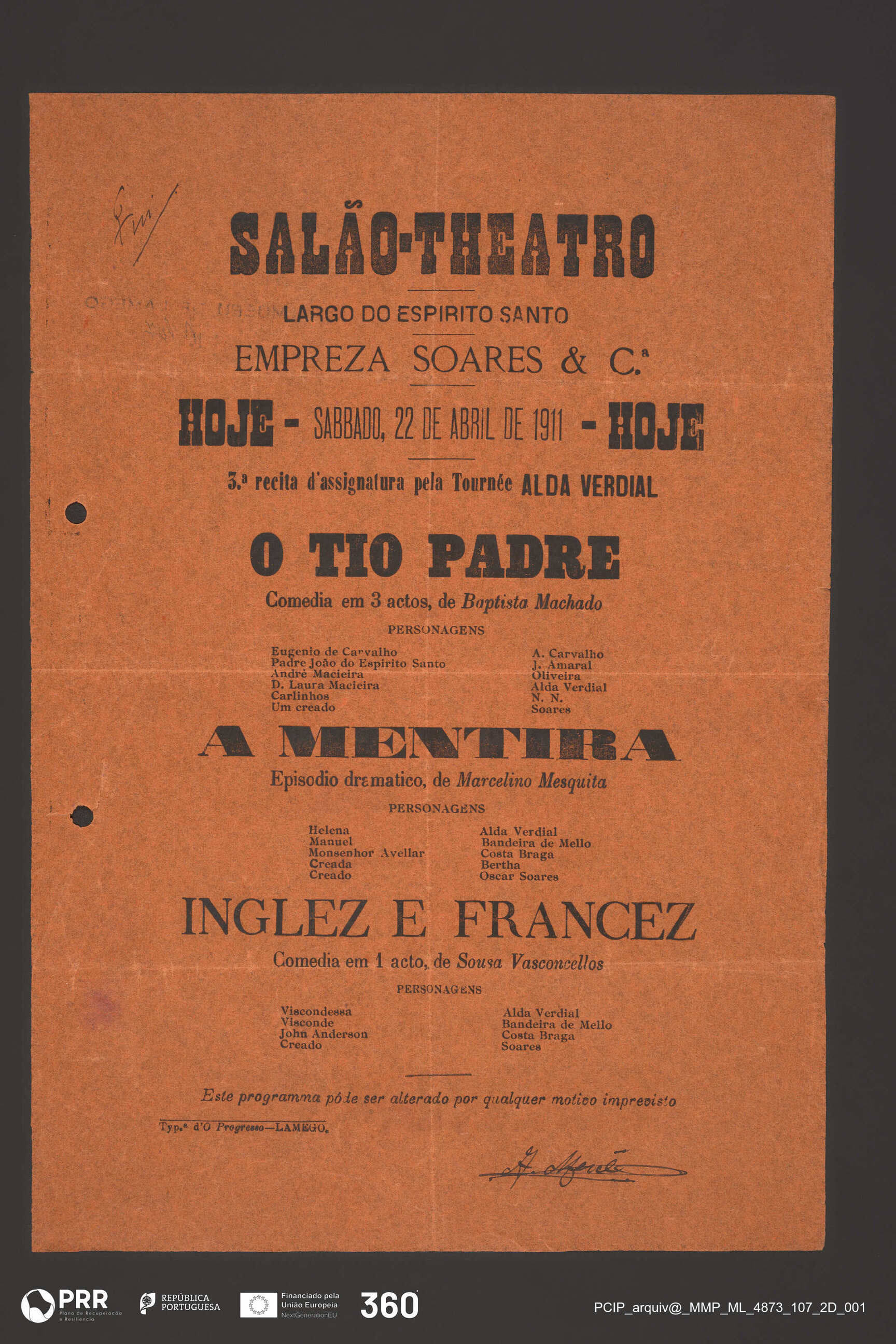 O Tio Padre; A Mentira; Inglez e Francez