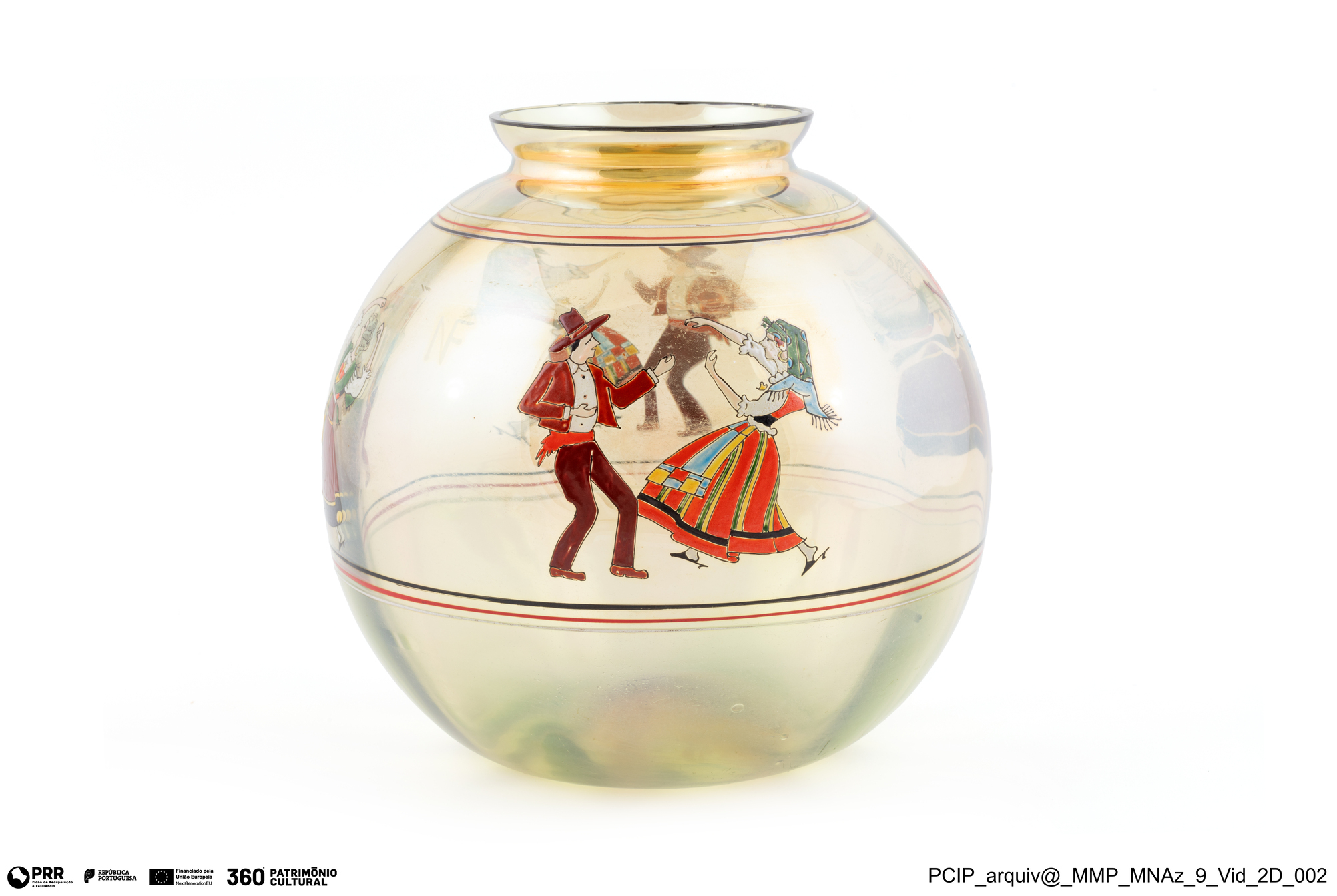 Matéria/Técnica: irisado "casca de cebola"; Cronologia: Desconhecida; Autoria: Desconhecida; Dimensões: Altura: 24cm x Diâmetro: 24cm.