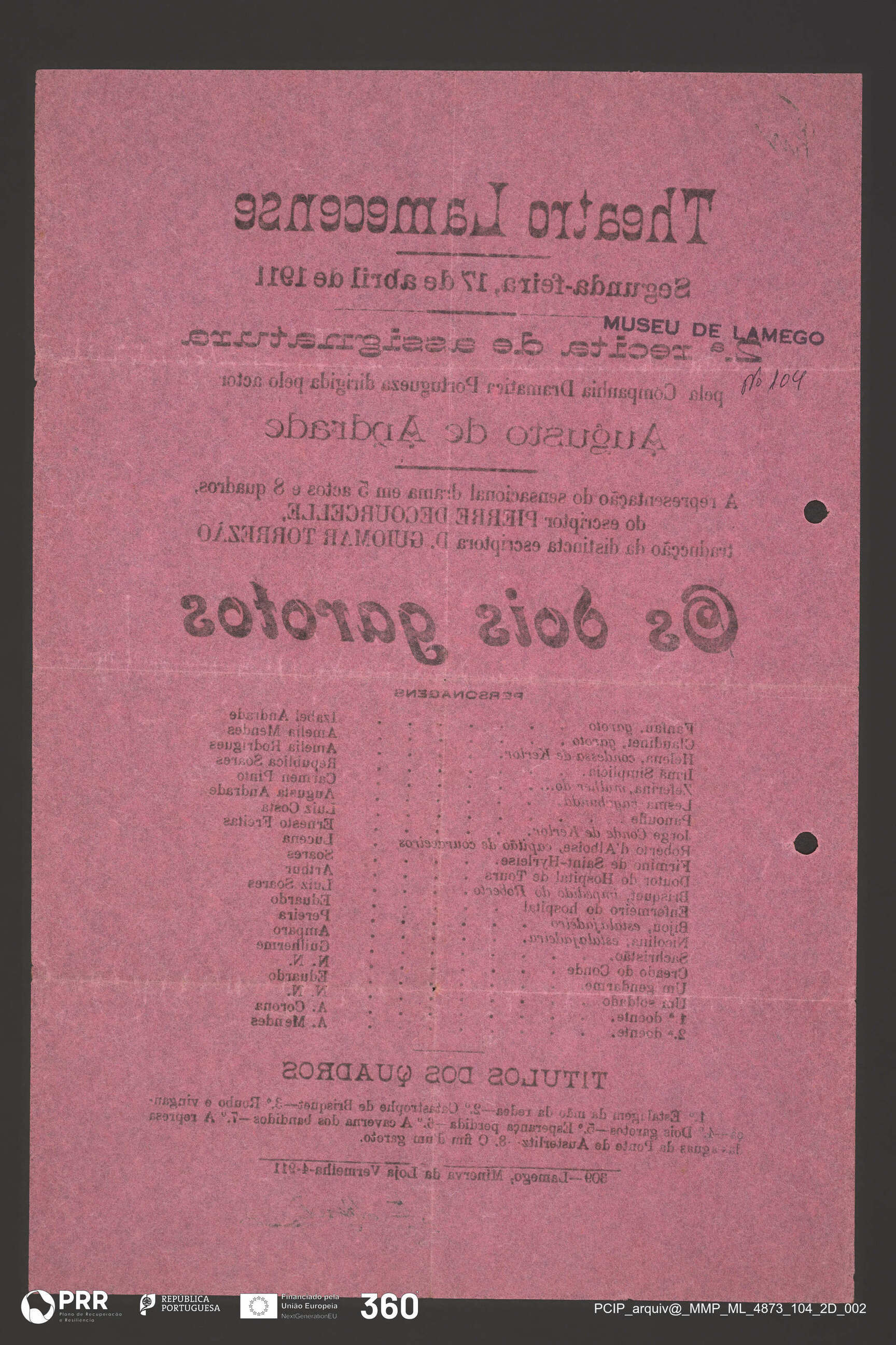 Matéria/Técnica: Impressão; Cronologia: 1911; Autoria: Desconhecida; Dimensões (cm): Altura: 30,1 x Comprimento: 20,3.