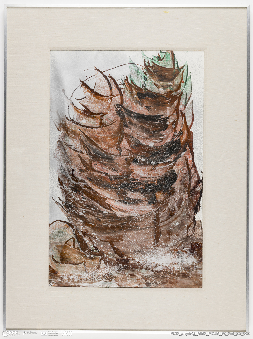 Matéria/Técnica: Gouache sobre papel; Cronologia: 1979; Autoria: Stella de Brito; Dimensões: Altura: 12 cm x Diâmetro: 23 cm.