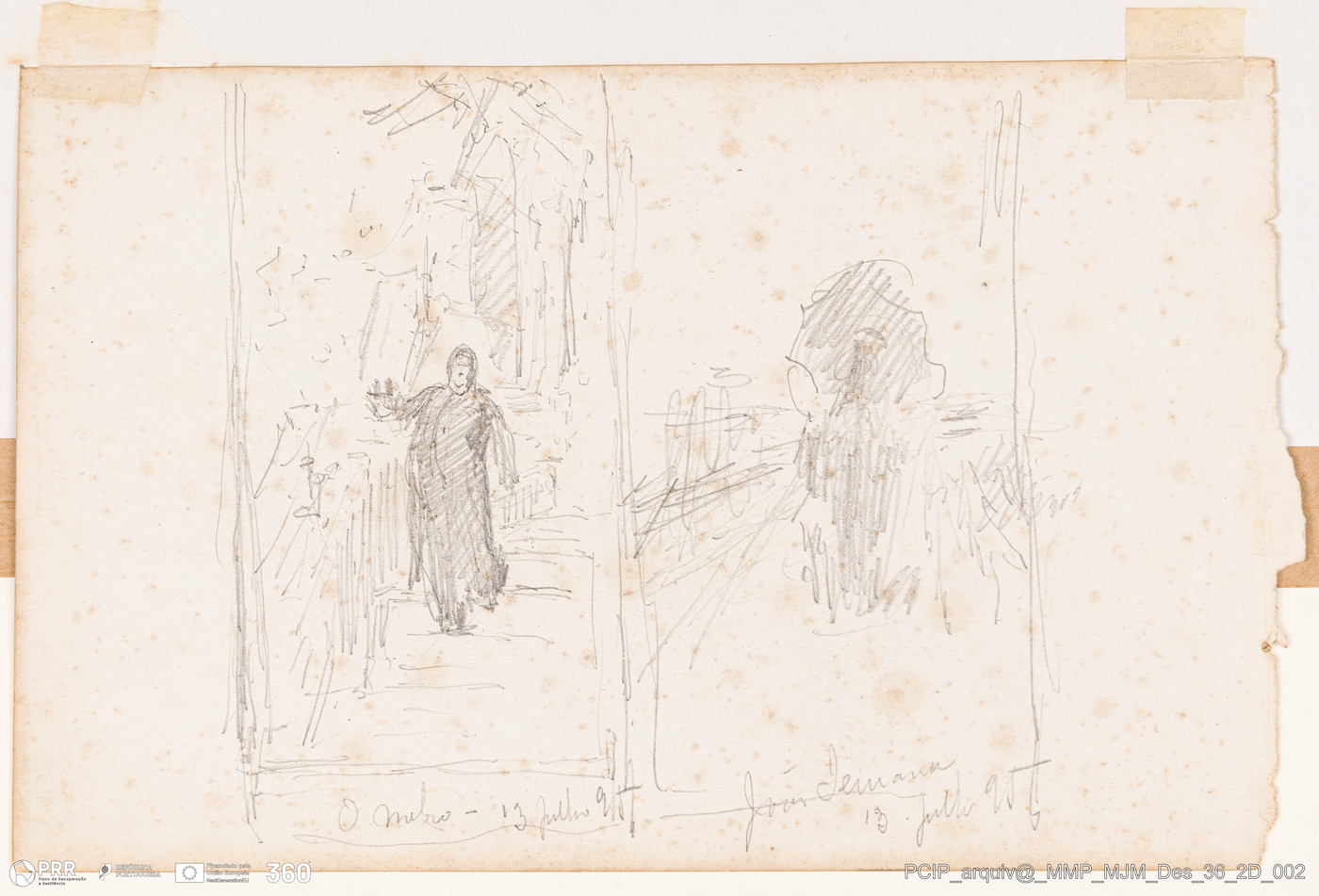 Matéria/Técnica: Lápis sobre papel; Cronologia: Desconhecida; Autoria: José Malhoa; Dimensões: 15 x 23 cm.