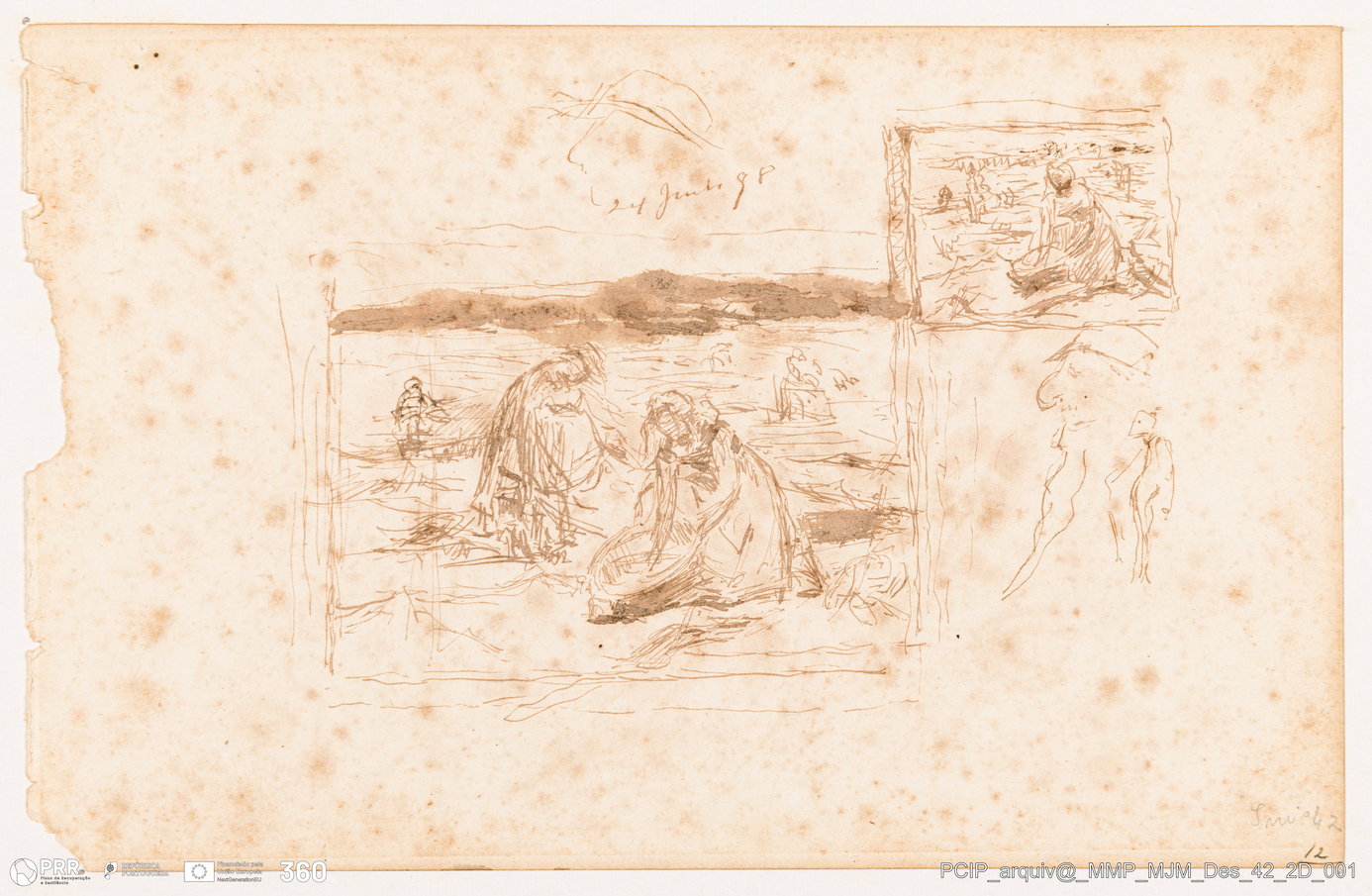 Matéria/Técnica: Lápis sobre papel; Cronologia: Desconhecida; Autoria: José Malhoa; Dimensões: 15 x 23 cm.