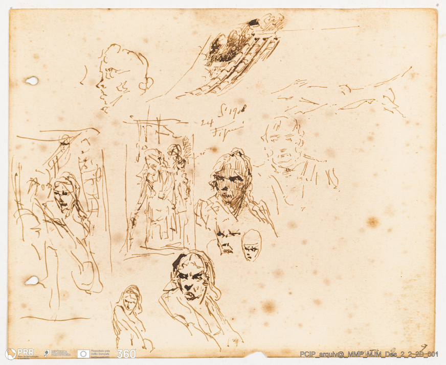 Matéria/Técnica: Lápis sobre papel; Cronologia: Desconhecida; Autoria: José Malhoa (1855-1933); Dimensões: 11 x 13,5 cm.