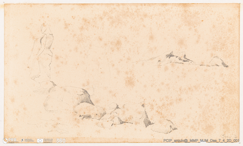 Matéria/Técnica: Lápis sobre papel; Cronologia: Desconhecida; Autoria: José Malhoa (1855-1933); Dimensões: 9 x 15,5 cm.