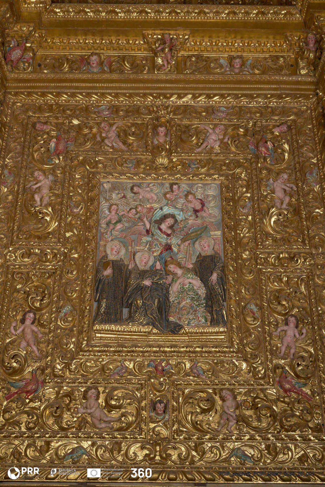 Matéria/Técnica: Madeira entalhada e dourada / Entalhamento e douramento; Cronologia: Séc. XVII; Autoria: Frei Cipriano da Cruz; Dimensões (cm): 137 x 98.