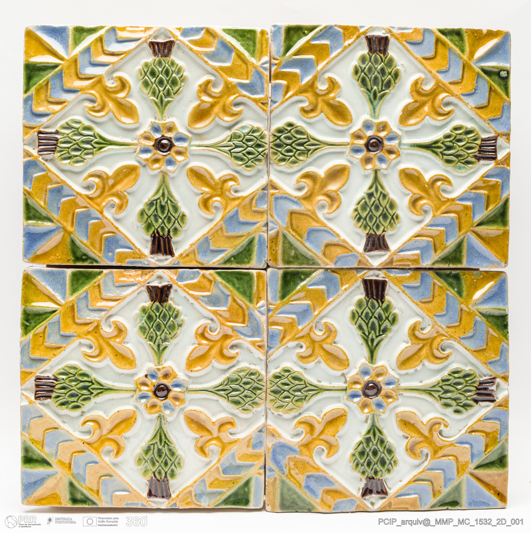 Matéria/Técnica: Barro branco moldado. Vidrado polícromo: verde, cor de mel, azul e branco; Cronologia: 1885-1905; Autoria: Rafael Bordalo Pinheiro / Fábrica de Faianças das Caldas da Rainha, Portugal; Dimensões (cm): Altura: 26; Largura: 26.
