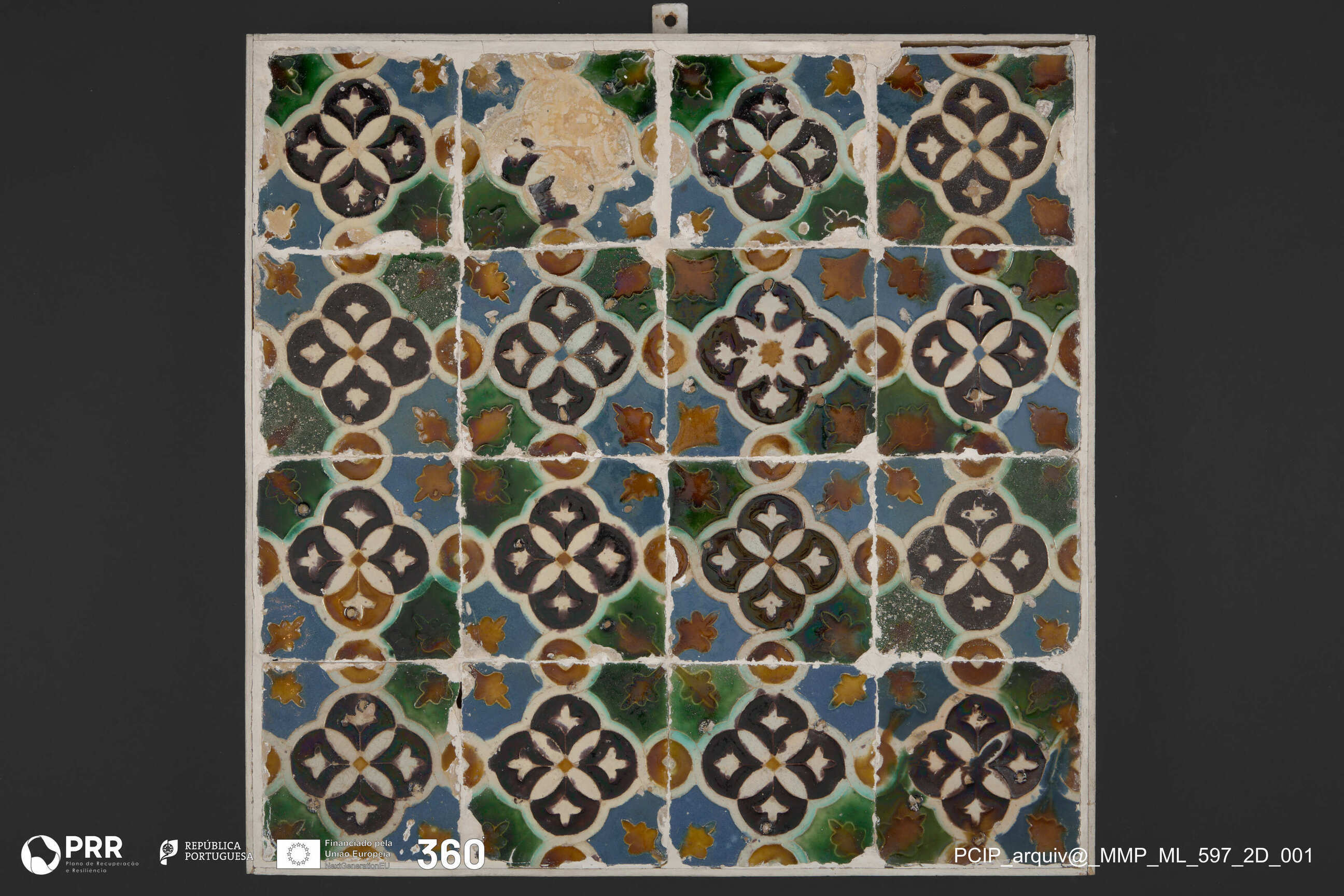Matéria/Técnica: Aresta com esmaltes policromos; Cronologia: 1503; Autoria: Quijarro, Fernan Martínez e Herrera, Pedro; Dimensões (cm): Altura: 54 x Largura: 54.