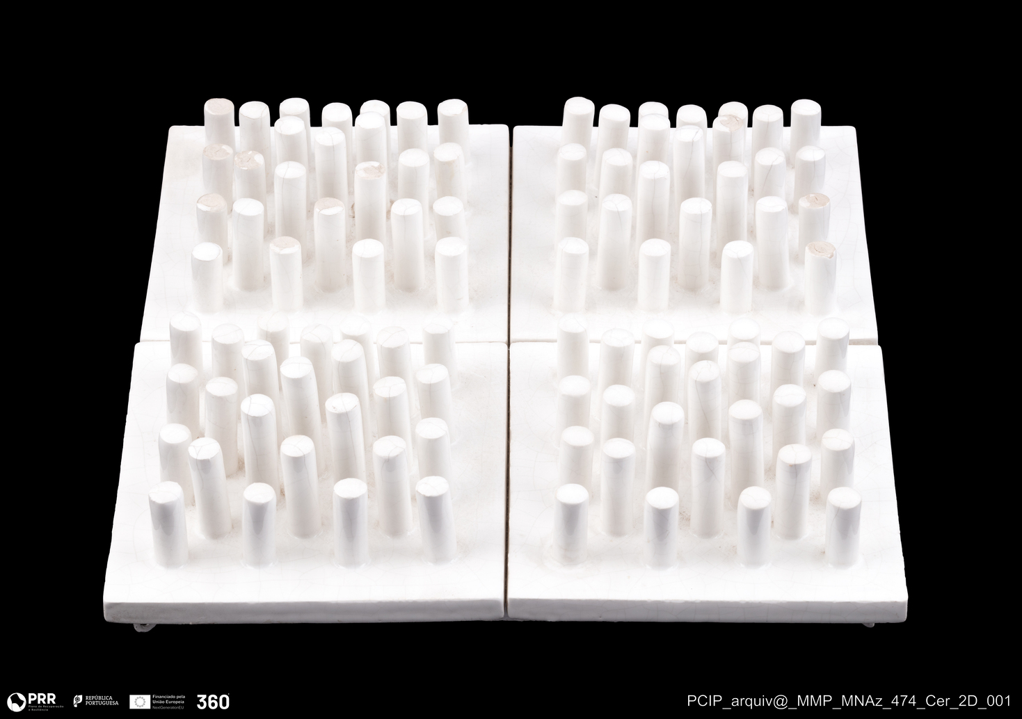 Matéria/ Técnica: Pasta branca; Cronologia: 1972; Autoria: Castro, Maria de Lourdes Mendes de Oliveira e (Lisboa, 1934 - ); Dimensões (cm): Altura: 14,7 cm; Largura: 14,7 cm; Peso 5 Kg.