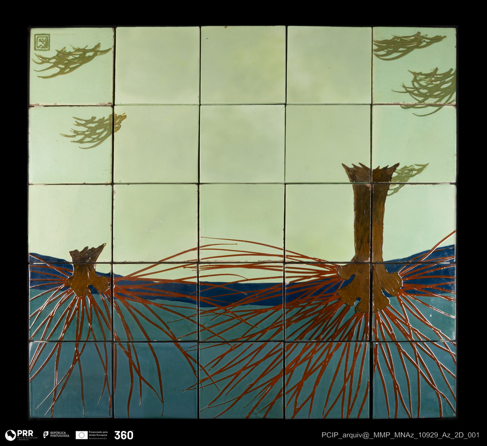 Matéria/Técnica: Faiança; Cronologia: c. 1900; Autoria: Max Laeuger ou Läuger; Dimensões: Altura: 102 cm x Largura: 102 cm x Espessura: 5 cm.