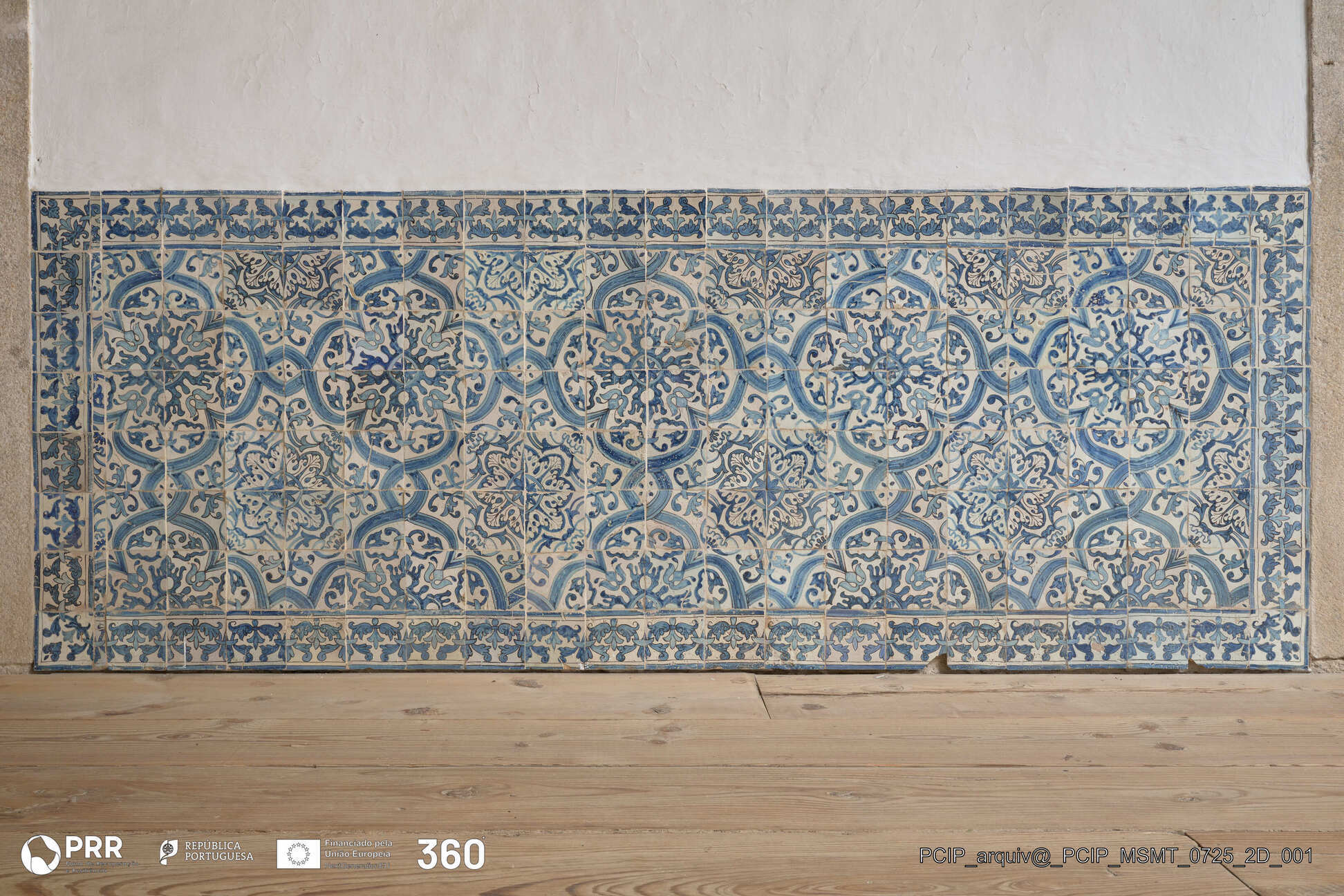 Matéria/Técnica: Cerâmica vidrada,pigmentos / Pintura azulejar; Cronologia: Finais do Séc. XVII; Autoria: Desconhecido; Dimensões (cm): 114 x 114.