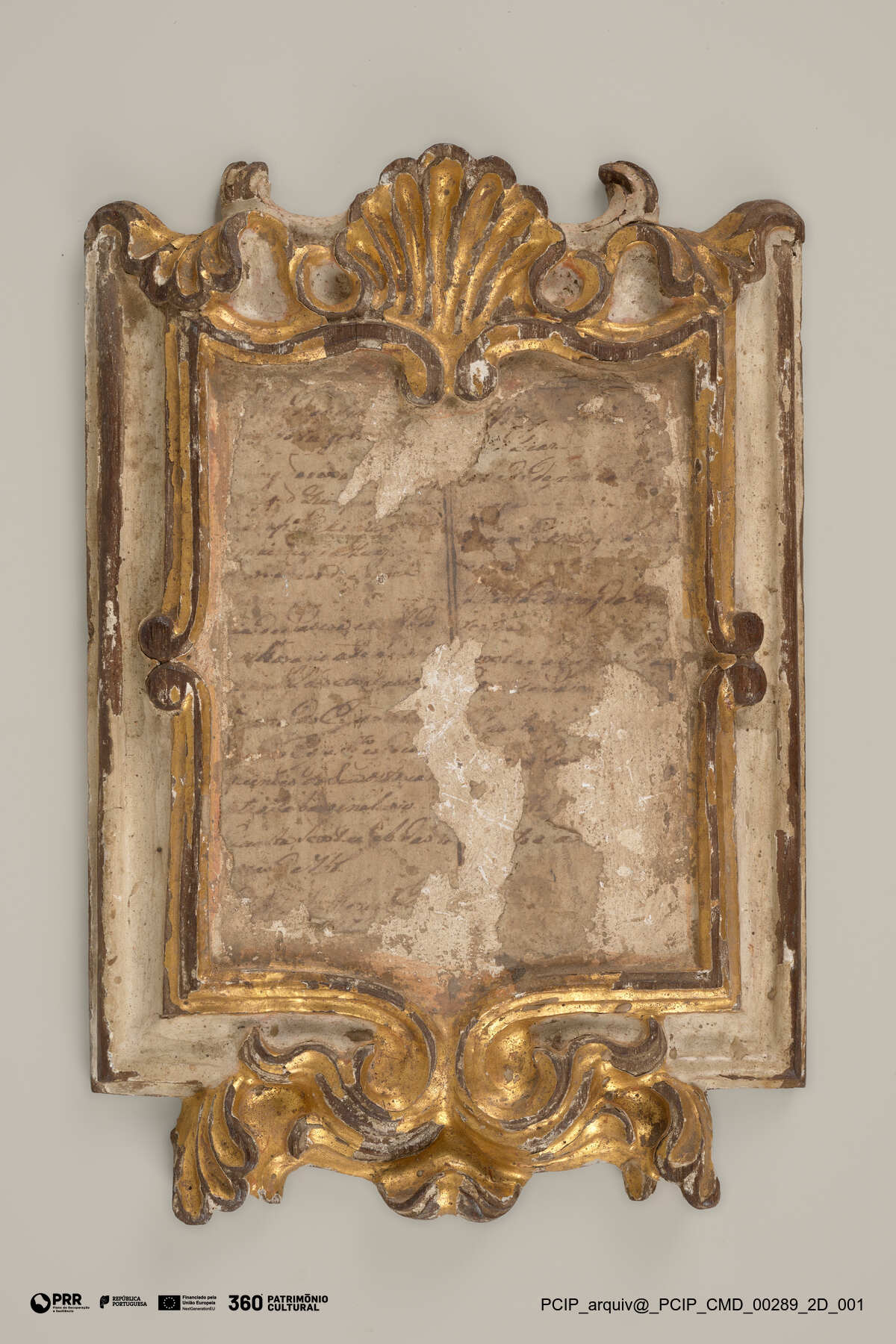 Matéria/Técnica: Desconhecida; Cronologia: XVIII; Autoria: Desconhecida; Dimensões: Altura: 31,5 cm; Largura: 21,5 cm; Profundidade: 2,5 cm.