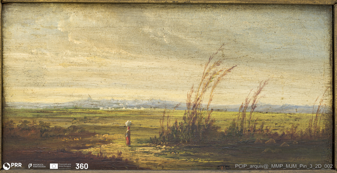 Matéria/Técnica: Óleo sobre madeira; Cronologia: 1868; Autoria: Joaquim Prieto (1833-1907); Dimensões: 11,2 x 22,2 cm.