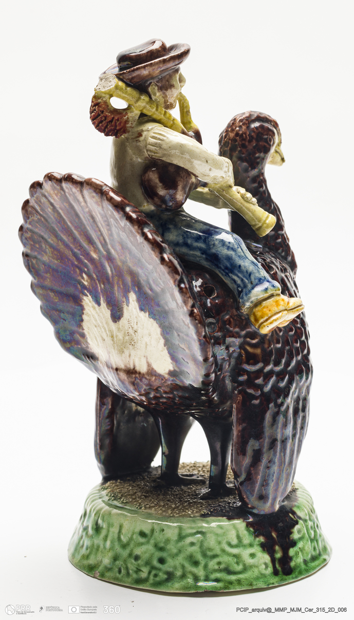Matéria/Técnica: Barro vidrado; Cronologia: Desconhecida; Autoria: Marca: I. L. Saloio; Dimensões: Comprimento: 8,6 x Altura: 16,4 x Largura: 9,7 cm.