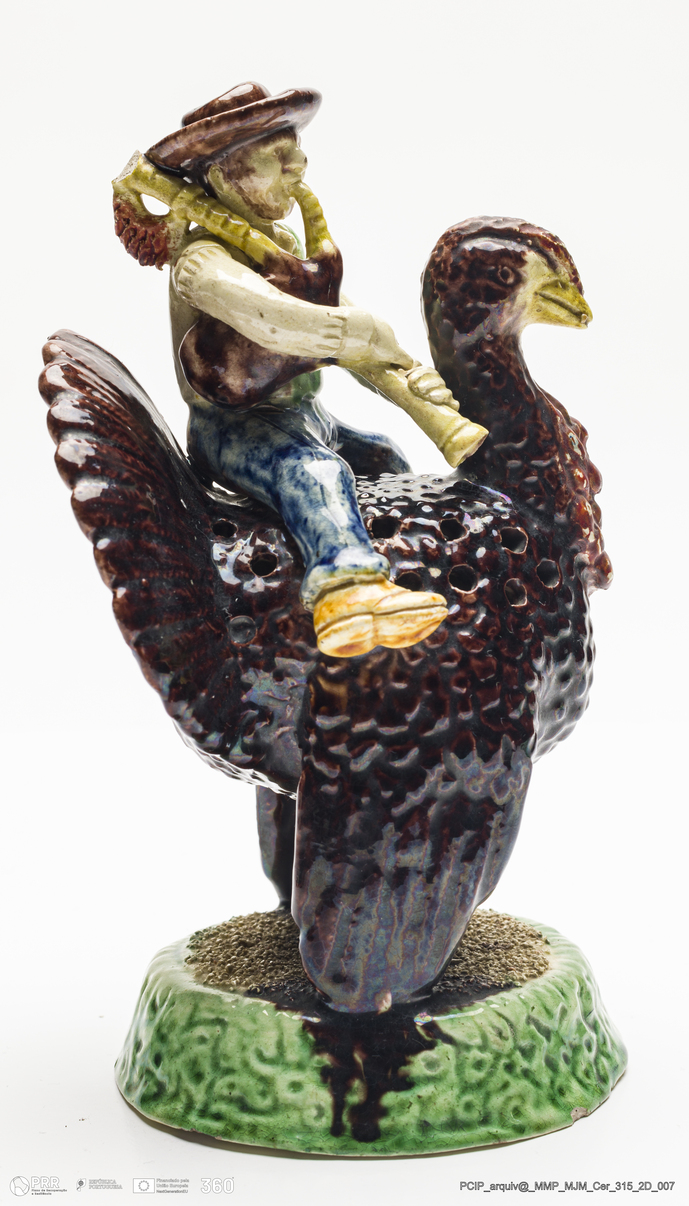 Matéria/Técnica: Barro vidrado; Cronologia: Desconhecida; Autoria: Marca: I. L. Saloio; Dimensões: Comprimento: 8,6 x Altura: 16,4 x Largura: 9,7 cm.