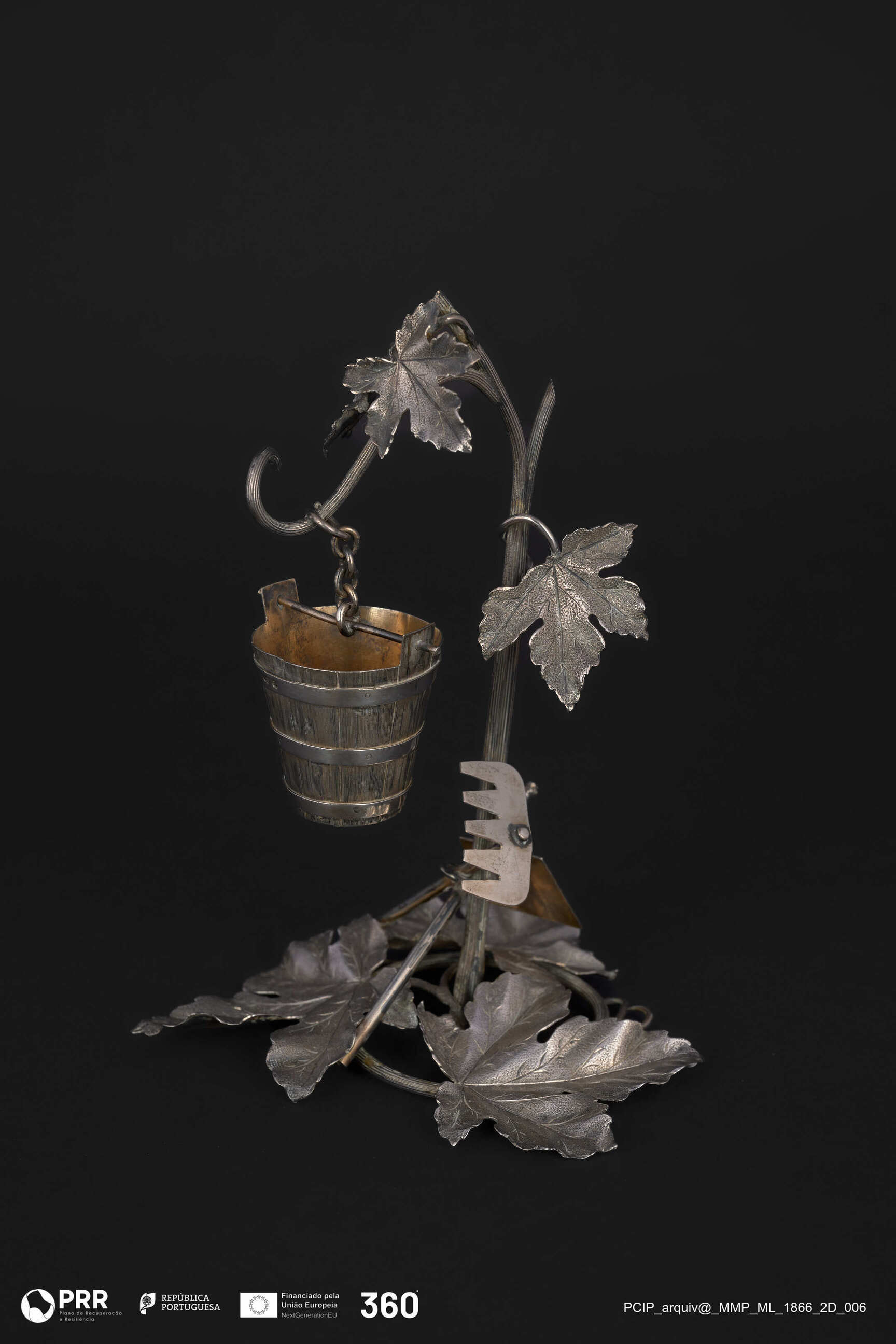 Matéria/Técnica: Prata fundida, cinzelada, recortada e incisa.; Cronologia: 1887-1900; Autoria: Trindade, Miguel Lourenço (ourives); Dimensões (cm): Altura: 15.