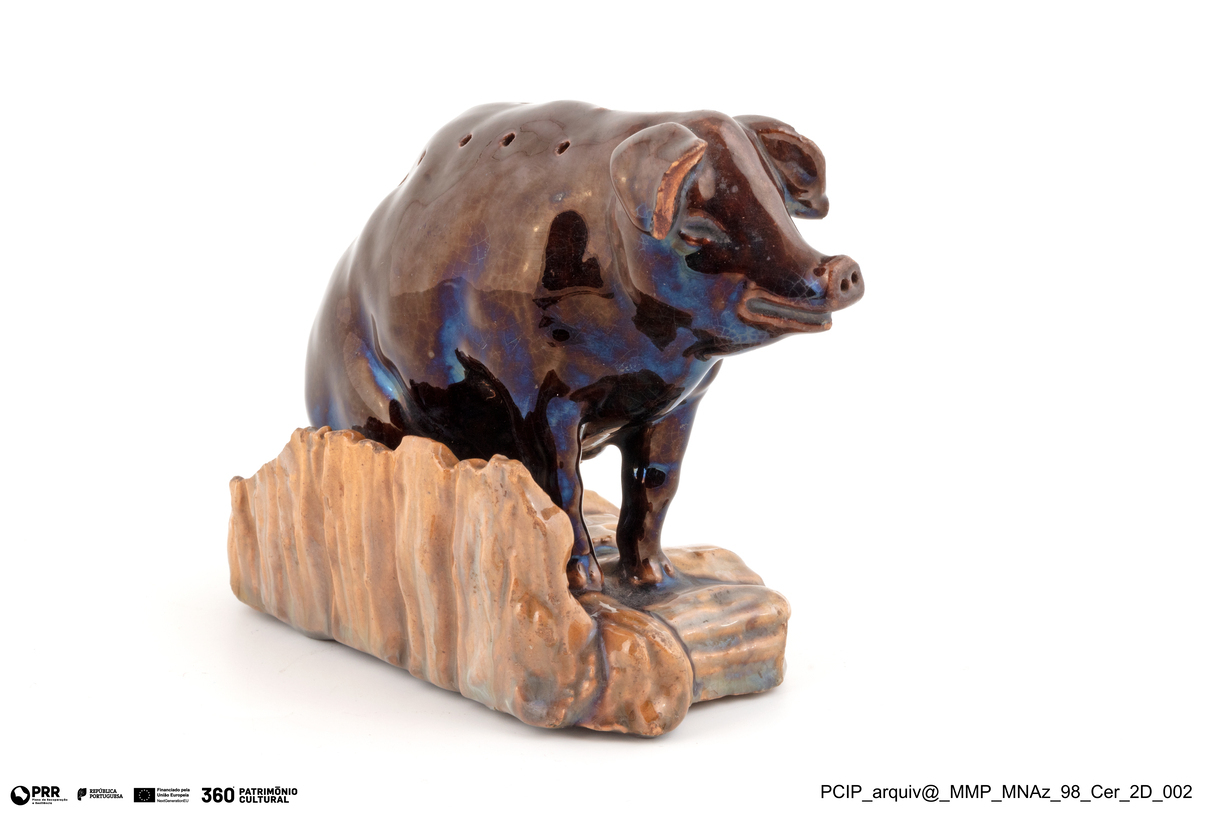 Matéria/Técnica: Faiança / Moldagem; Cronologia: 1901; Autoria: Bordalo Pinheiro, Rafael (Lisboa, 1846 - 1905); Dimensões: Altura: 9,5cm x Largura: 7,5cm x Comprimento: 11,5cm.