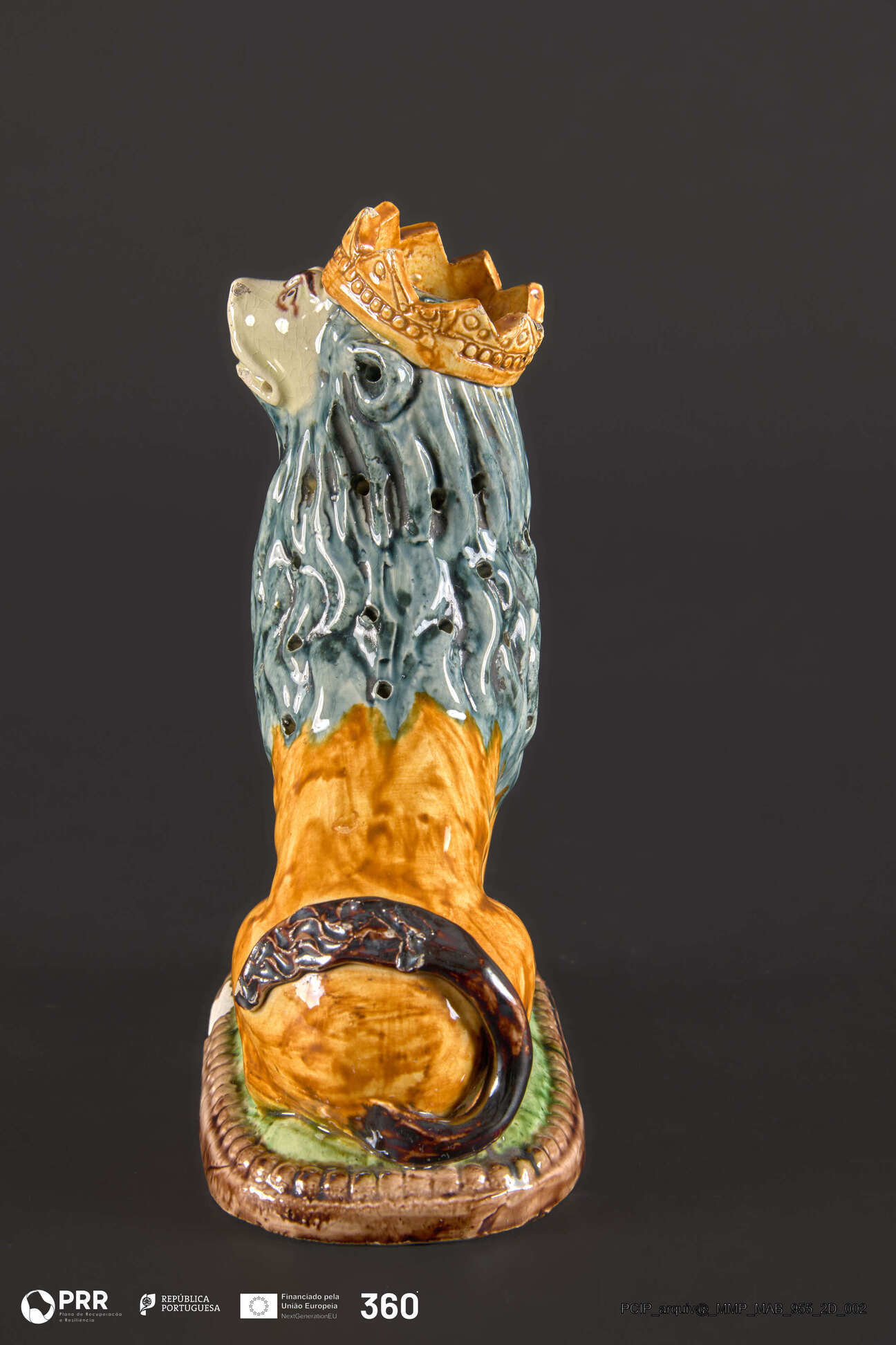 Matéria/Técnica: Faiança moldada, vidrada e pintada (verde, amarelo, castanho, preto); Cronologia: Desconhecida; Autoria: Desconhecida; Dimensões: Desconhecidas.