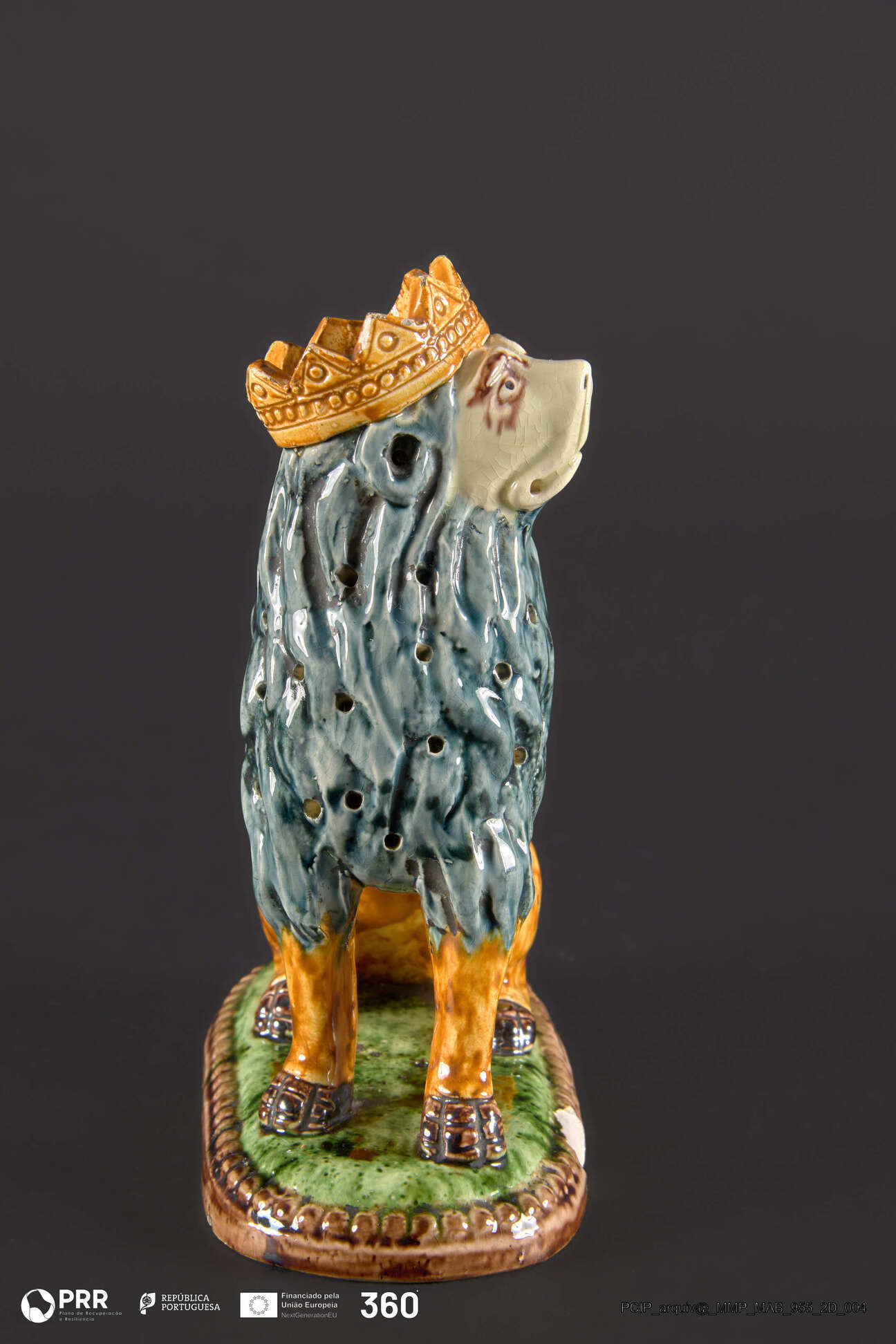 Matéria/Técnica: Faiança moldada, vidrada e pintada (verde, amarelo, castanho, preto); Cronologia: Desconhecida; Autoria: Desconhecida; Dimensões: Desconhecidas.
